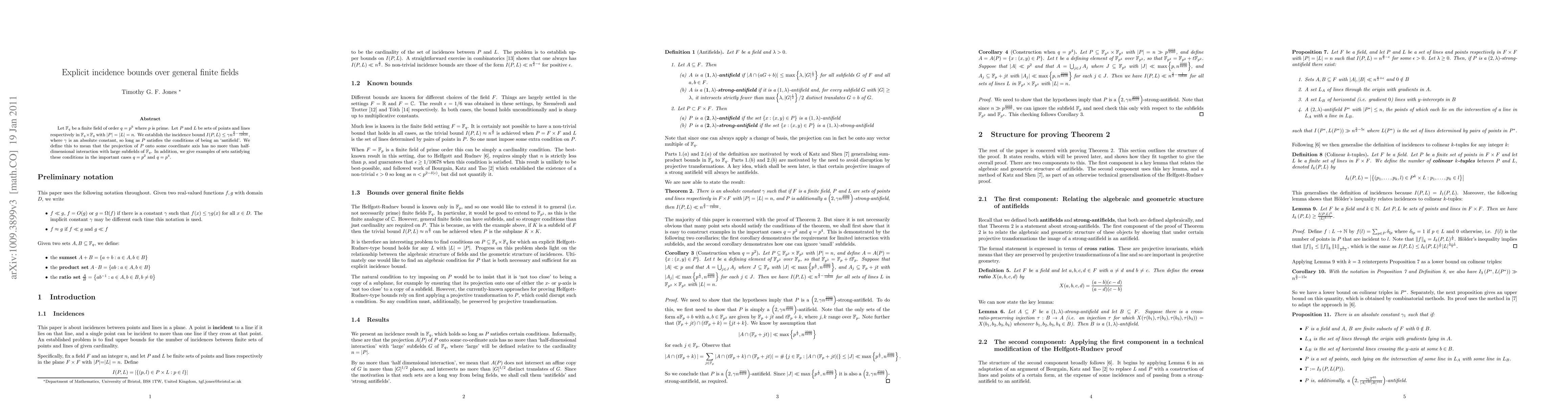Let $\mathbb{F}_{q}$ be a finite field of order $q=p^k$ where $p$ is prime. Let $P$ and $L$ be sets of points and lines respectively in $\mathbb{F}_{q} \times \mathbb{F}_{q}$ with $|P|=|L|=n$. We establish the incidence bound $I(P,L) \leq \gamma n^{3/2 - 1/12838}$, where $\gamma$ is an absolute constant, so long as $P$ satisfies the conditions of being an `antifield'. We define this to mean that the projection of $P$ onto some coordinate axis has no more than half-dimensional interaction with large subfields of $\mathbb{F}_q$. In addition, we give examples of sets satisfying these conditions in the important cases $q=p^2$ and $q=p^4$.