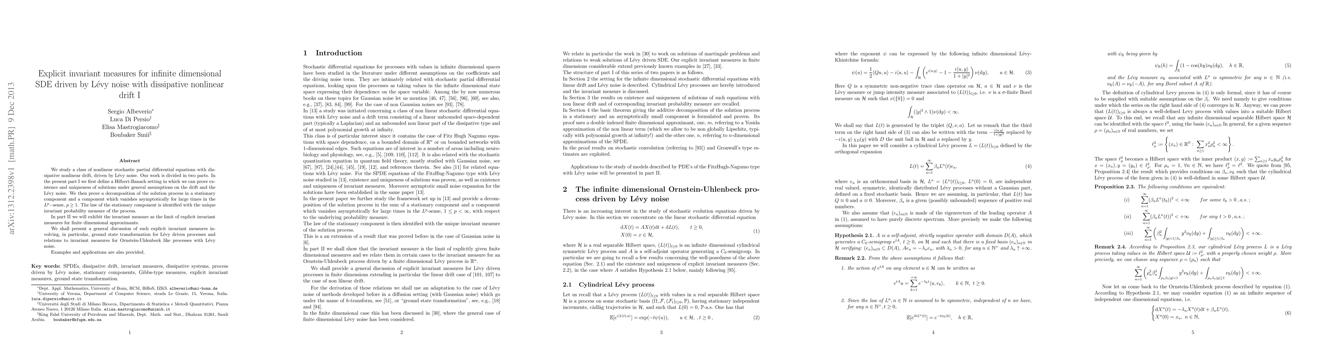 This paper studies nonlinear stochastic partial differential equations driven by Lévy noise with dissipative drift. It establishes existence and uniqueness of solutions in a Hilbert-Banach setting and shows a decomposition into a stationary and an asymptotically vanishing component, identifying the stationary component's law as the unique invariant probability measure. Part II will detail the invariant measure as the limit of explicit measures from finite-dimensional approximations.