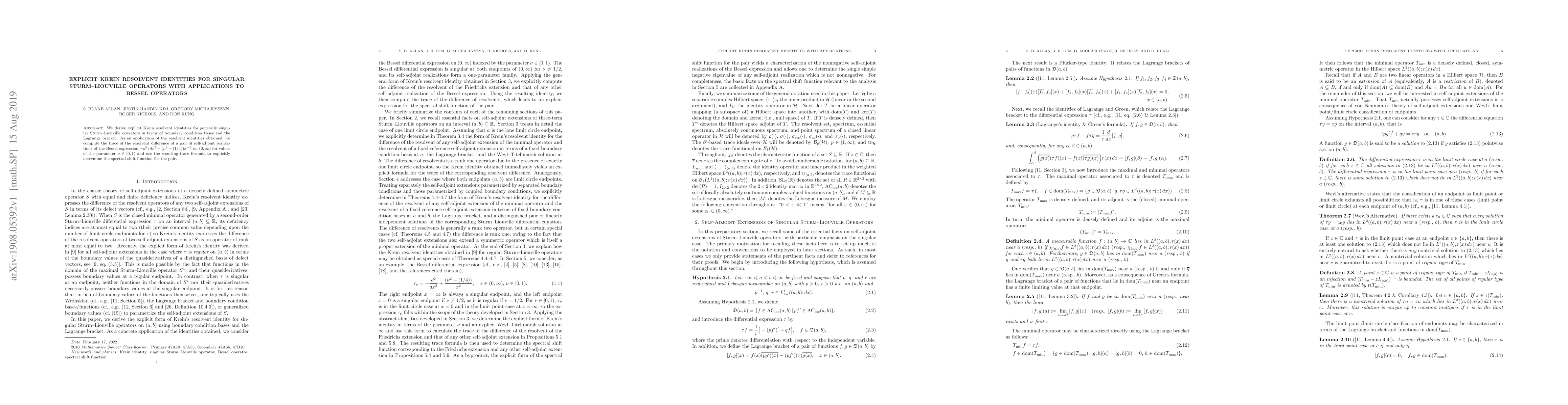 The paper derives explicit Krein resolvent identities for singular Sturm-Liouville operators and applies them to compute the trace of the resolvent difference for self-adjoint Bessel operators, determining the spectral shift function.