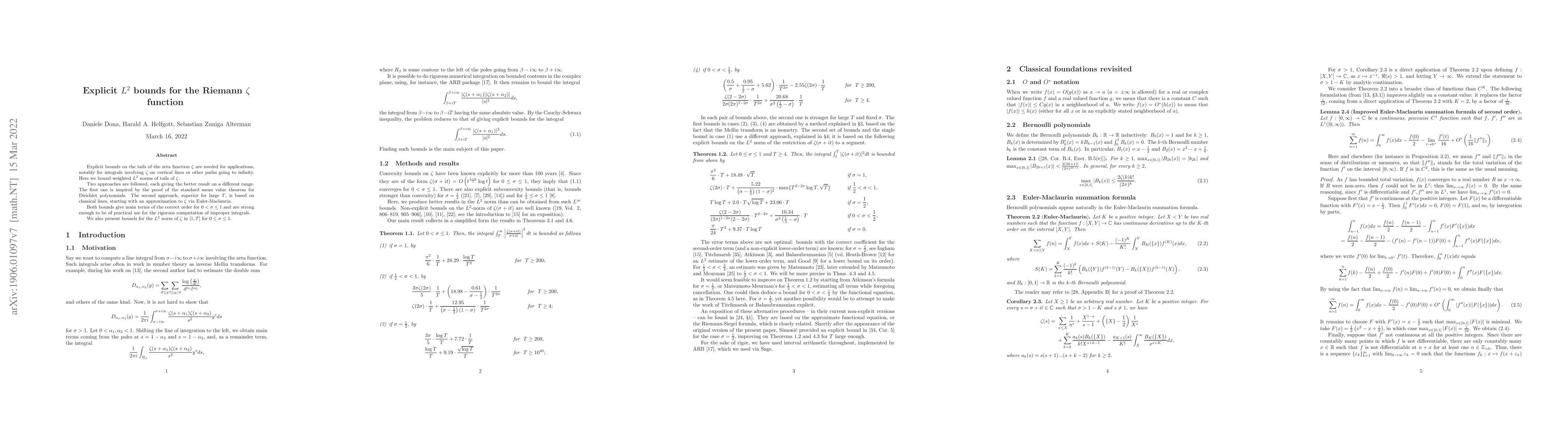 This paper provides explicit $L^2$ bounds for the tails of the Riemann zeta function $\zeta$, employing two distinct methods, each optimal in different ranges. The results are useful for computing integrals involving $\zeta$ and are strong enough for practical applications.