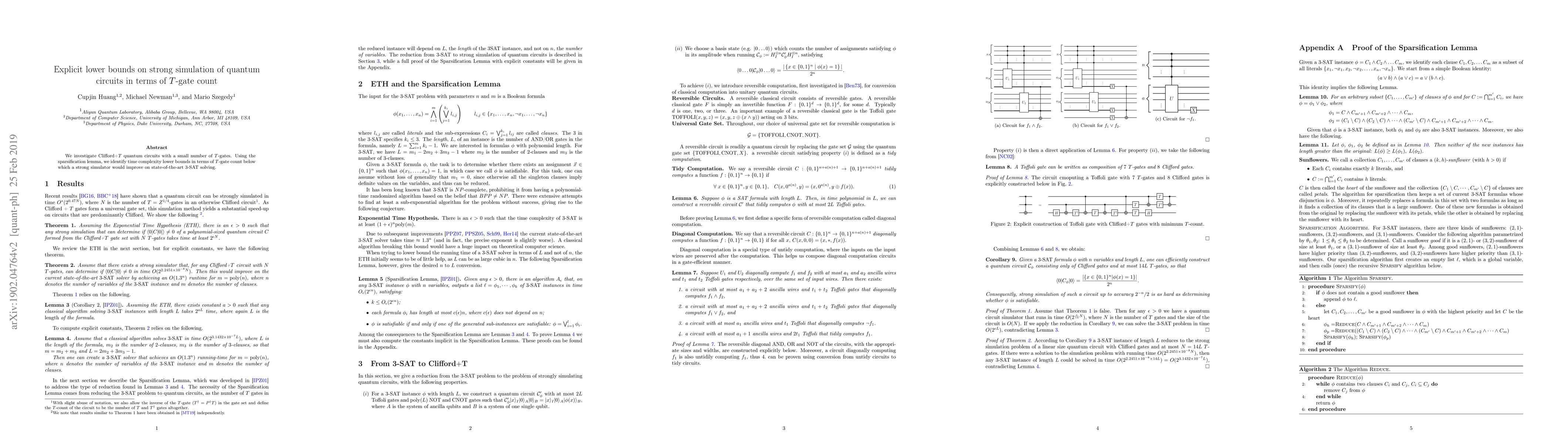 We investigate Clifford+$T$ quantum circuits with a small number of $T$-gates. Using the sparsification lemma, we identify time complexity lower bounds in terms of $T$-gate count below which a strong simulator would improve on the state-of-the-art $3$-SAT solving.