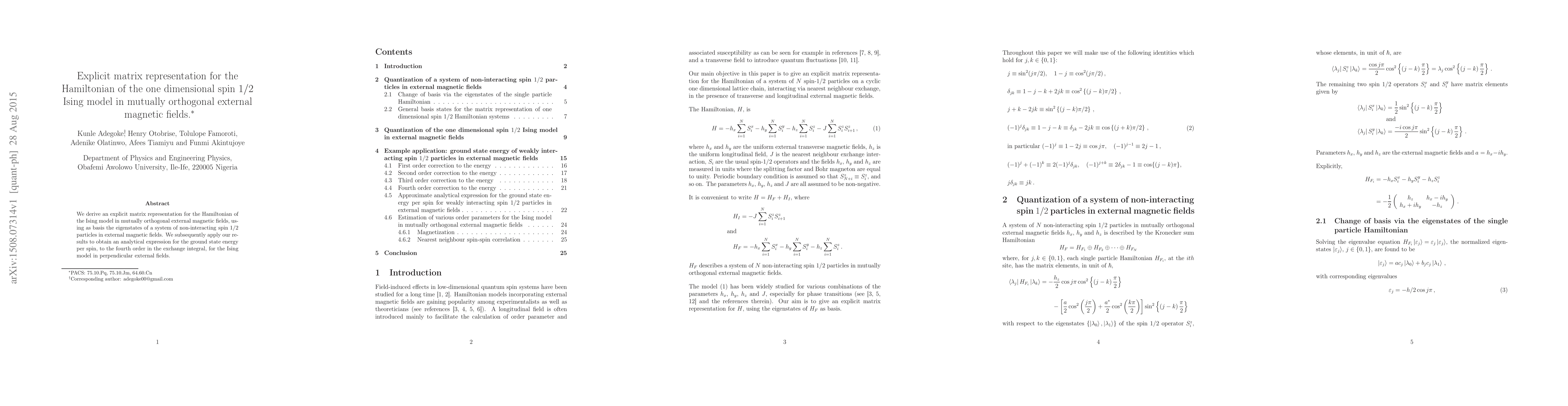 Researchers derived an explicit matrix representation for the Ising model in mutually orthogonal external magnetic fields, allowing for a detailed analytical expression of the ground state energy per spin to the fourth order in the exchange integral.