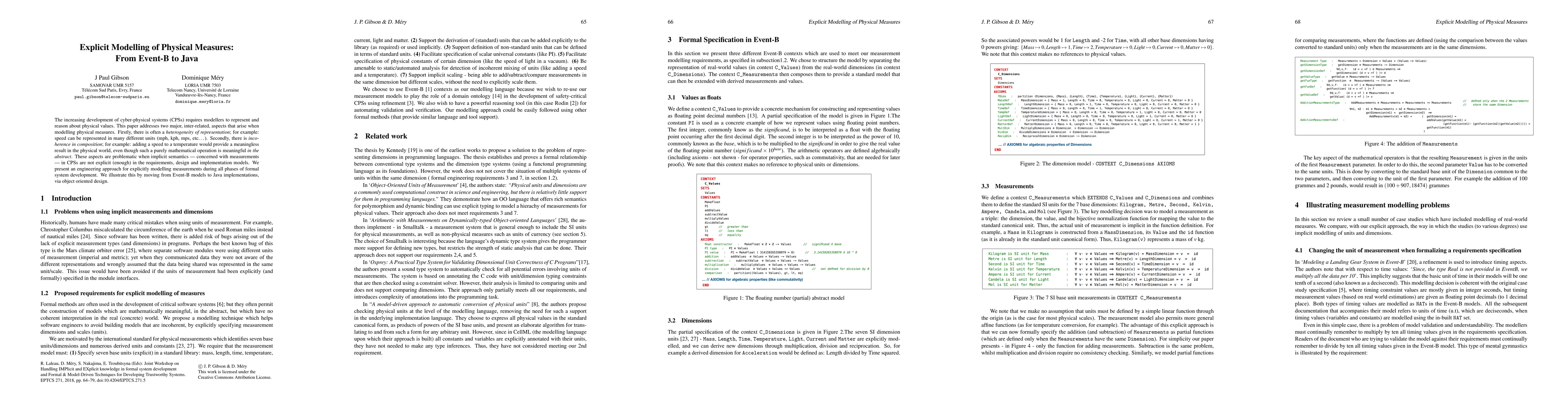 The increasing development of cyber-physical systems (CPSs) requires modellers to represent and reason about physical values. This paper addresses two major, inter-related, aspects that arise when modelling physical measures. Firstly, there is often a heterogeneity of representation; for example: speed can be represented in many different units (mph, kph, mps, etc. . . ). Secondly, there is incoherence in composition; for example: adding a speed to a temperature would provide a meaningless result in the physical world, even though such a purely mathematical operation is meaningful in the abstract. These aspects are problematic when implicit semantics - concerned with measurements - in CPSs are not explicit (enough) in the requirements, design and implementation models. We present an engineering approach for explicitly modelling measurements during all phases of formal system development. We illustrate this by moving from Event-B models to Java implementations, via object oriented design.