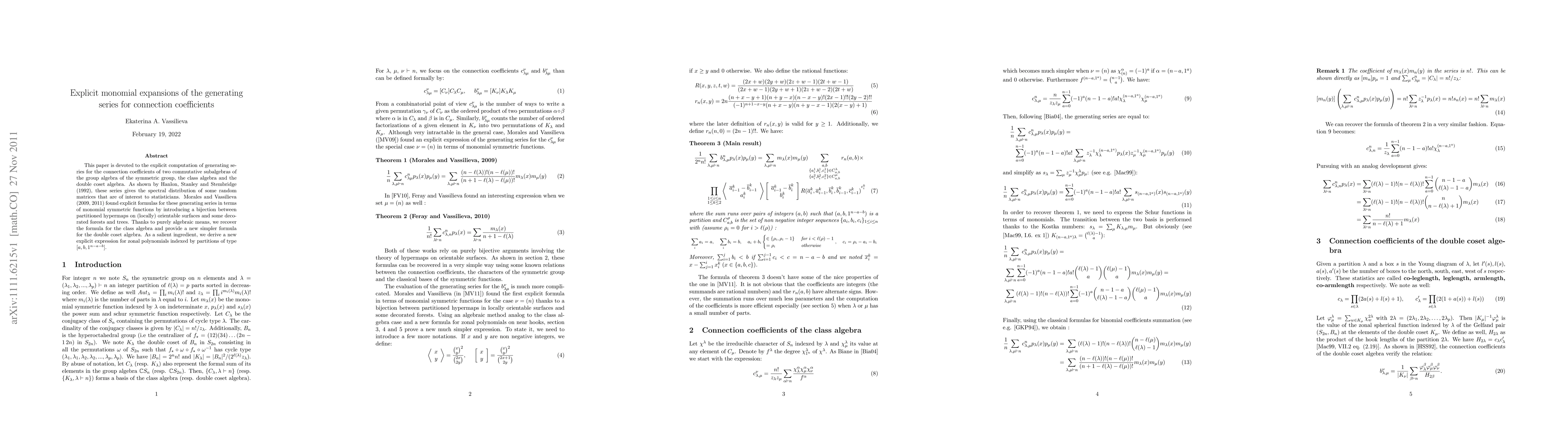 The research builds upon previous work by Morales and Vassilieva (2009, 2011) and Hanlon, Stanley, and Stembridge (1992), but offers new algebraic derivations leading to simpler formulas for generating series and an explicit expression for zonal polynomials.