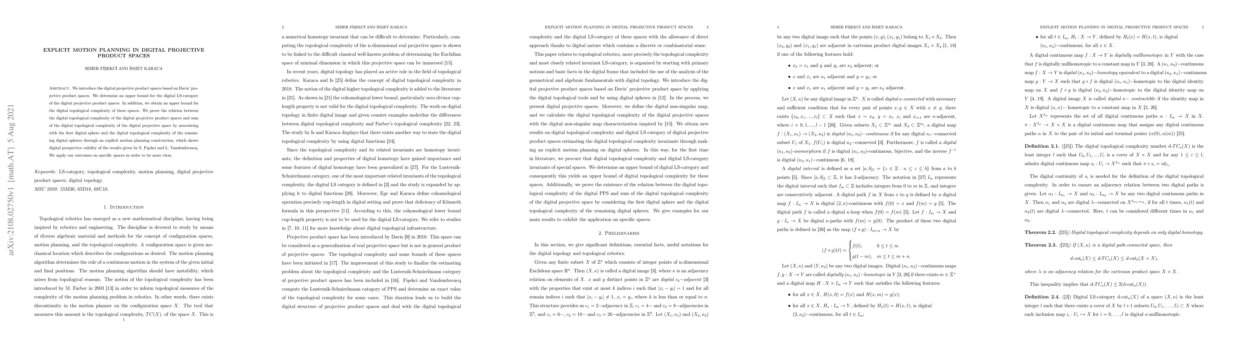 This paper introduces digital projective product spaces, establishes upper bounds for their digital LS-category and topological complexity, and demonstrates their relation through an explicit motion planning construction, validating prior results by Fışekci and Vandembroucq and applying findings to specific spaces.