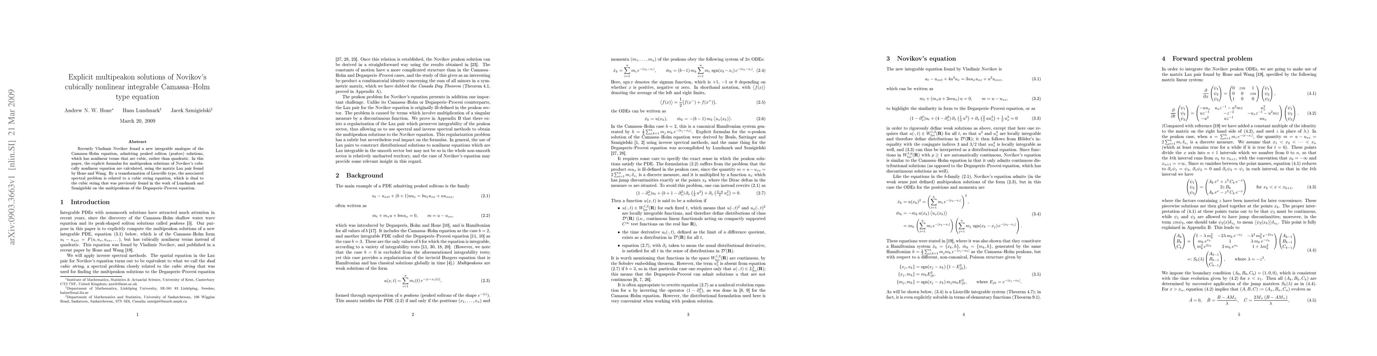 This paper derives explicit formulas for multipeakon solutions of Novikov's cubically nonlinear integrable equation, utilizing the matrix Lax pair and a Liouville-type transformation to relate the spectral problem to a cubic string equation. This extends the study of peakon solutions beyond quadratic nonlinearities.