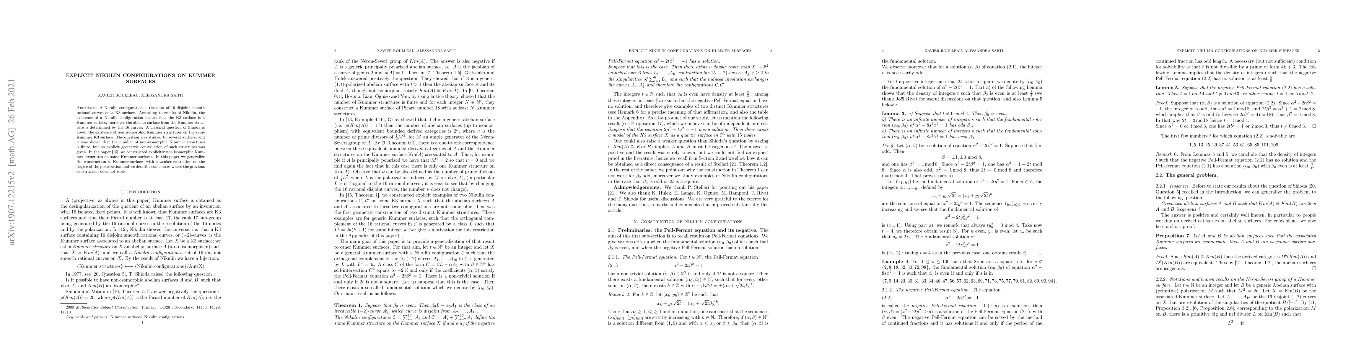 A Nikulin configuration is the data of $16$ disjoint smooth rational curves on a K3 surface. According to results of Nikulin, the existence of a Nikulin configuration means that the K3 surface is a Kummer surface, moreover the abelian surface from the Kummer structure is determined by the $16$ curves. A classical question of Shioda is about the existence of non isomorphic Kummer structures on the same Kummer K3 surface. The question was studied by several authors, and it was shown that the number of non-isomorphic Kummer structures is finite, but no explicit geometric construction of such structures was given. In a previous paper, we constructed explicitly non isomorphic Kummer structures on some Kummer surfaces. In this paper we generalise the construction to Kummer surfaces with a weaker restriction on the degree of the polarization and we describe some cases where the previous construction does not work.