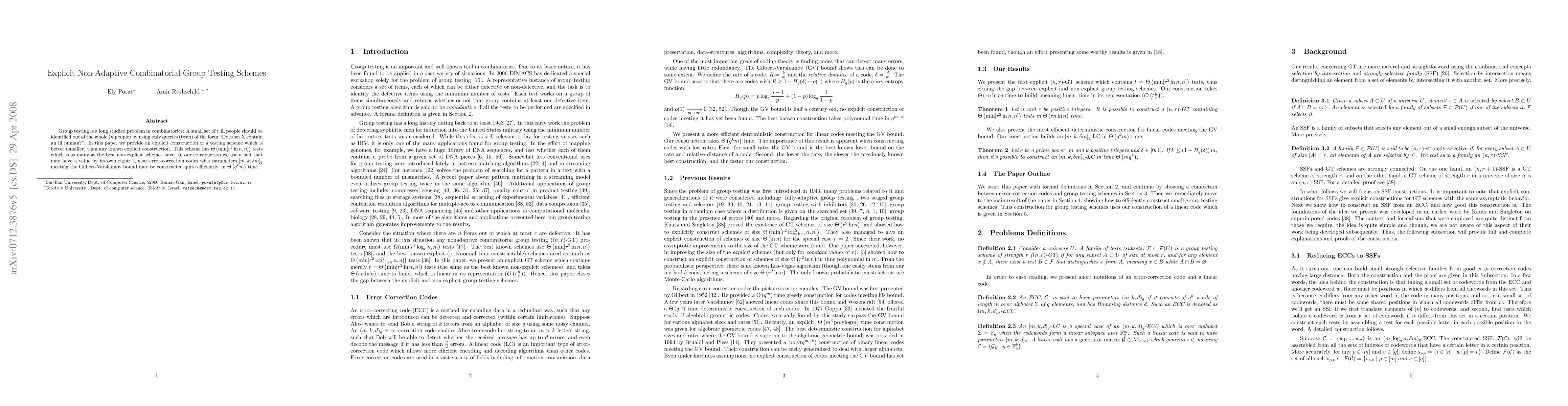 Researchers have developed an explicit non-adaptive group testing scheme with a limited number of tests, outperforming existing schemes in terms of efficiency, using linear error-correction codes to achieve this goal.