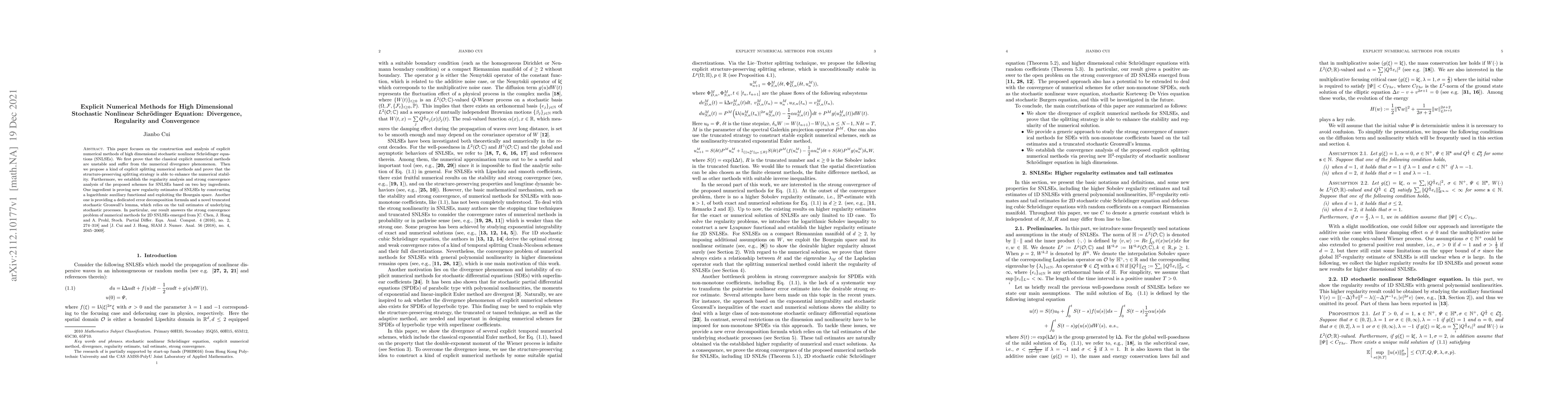 This paper develops explicit numerical methods for solving high-dimensional stochastic nonlinear Schr"odinger equations, addressing stability, convergence, and regularity issues with a focus on structure-preserving splitting strategies and novel error decomposition formulas.