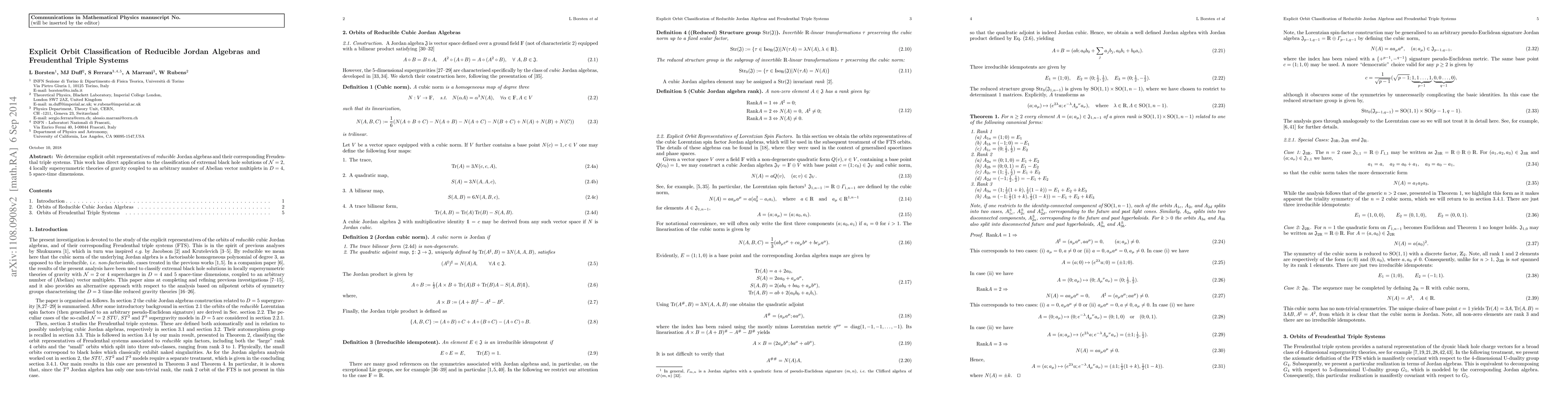 This paper identifies explicit orbit representatives for reducible Jordan algebras and their corresponding Freudenthal triple systems, providing a classification that has implications for the categorization of extremal black hole solutions in N = 2, 4 supersymmetric theories in D = 4, 5 dimensions.