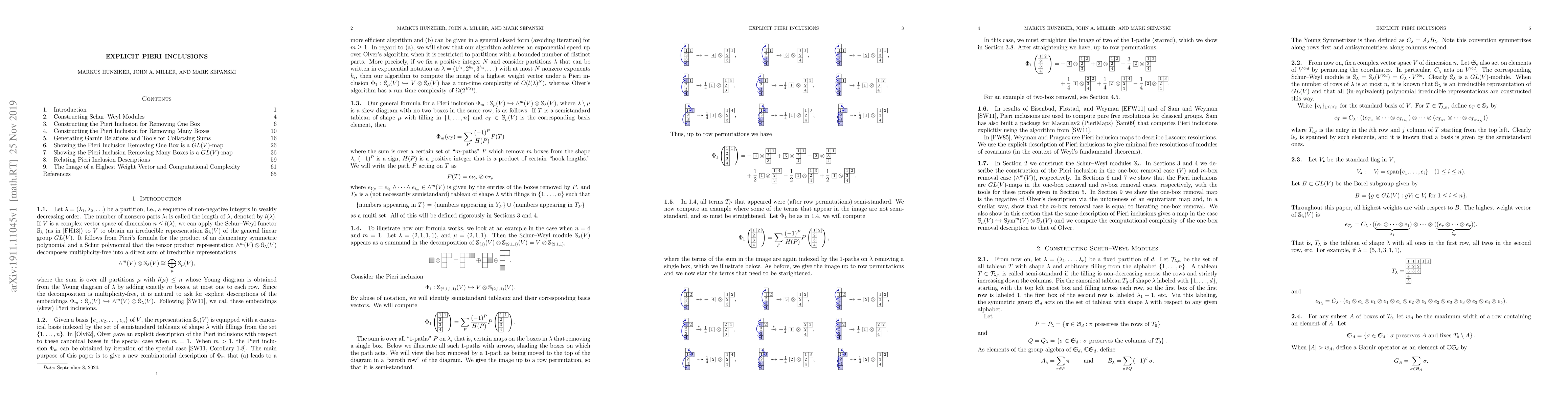 This paper presents a new closed form for Pieri inclusions, which describe the embeddings in the multiplicity-free decomposition of tensor products involving exterior powers and irreducible representations of a general linear group. The new algorithm offers polynomial time complexity for partitions with a limited number of distinct parts, significantly improving upon the previously exponential time complexity.