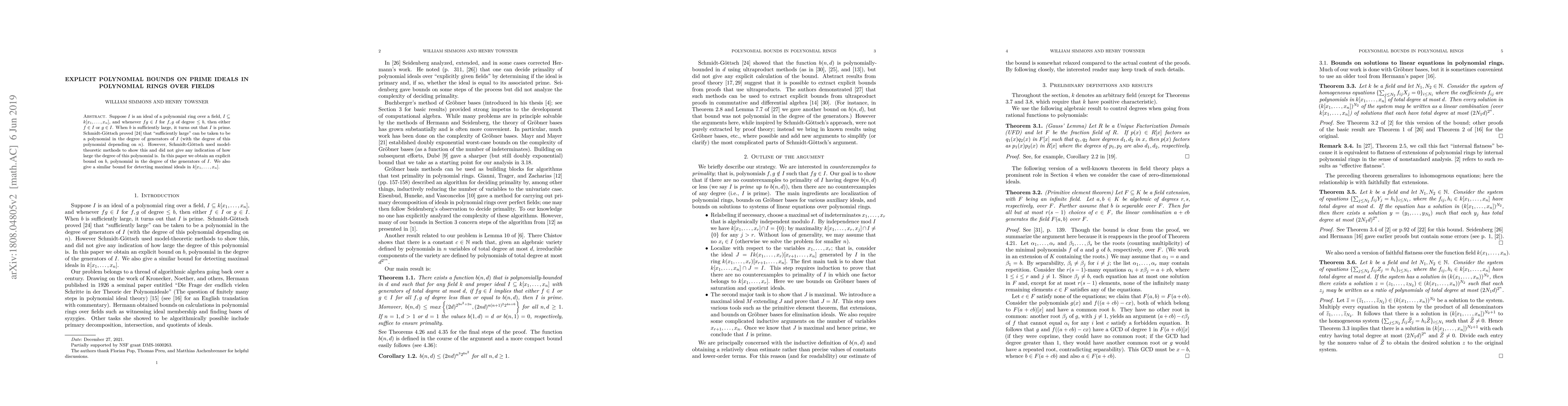 Suppose $I$ is an ideal of a polynomial ring over a field, $I\subseteq k[x_1,\ldots,x_n]$, and whenever $fg\in I$ with degree $\leq b$, then either $f\in I$ or $g\in I$. When $b$ is sufficiently large, it follows that $I$ is prime. Schmidt-G\"ottsch proved that "sufficiently large" can be taken to be a polynomial in the degree of generators of $I$ (with the degree of this polynomial depending on $n$). However Schmidt-G\"ottsch used model-theoretic methods to show this, and did not give any indication of how large the degree of this polynomial is. In this paper we obtain an explicit bound on $b$, polynomial in the degree of the generators of $I$. We also give a similar bound for detecting maximal ideals in $k[x_1,\ldots,x_n]$.