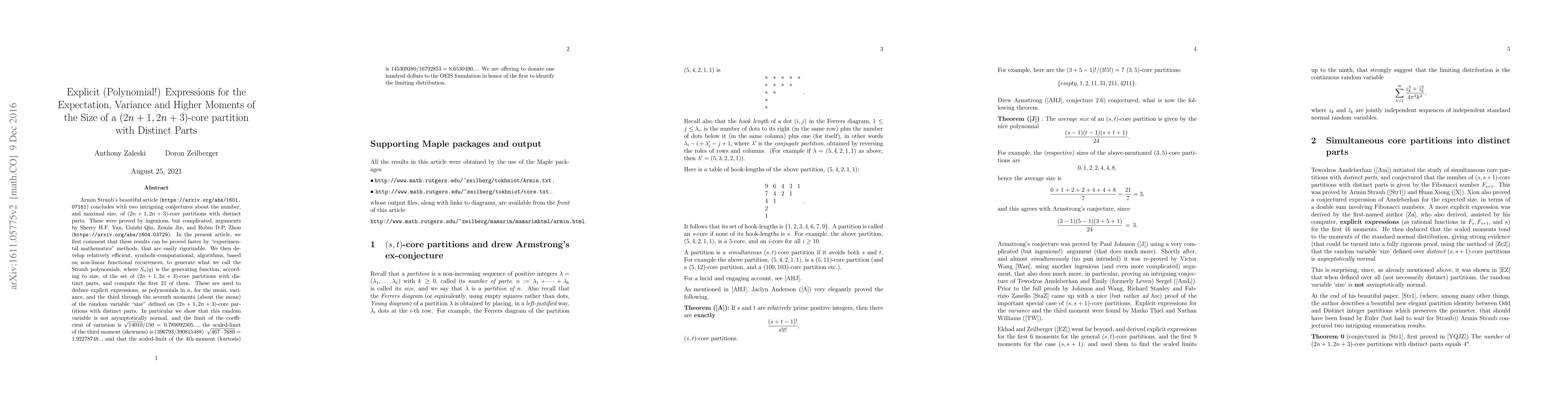 Inspired by Armin Straub's conjecture (arXiv:1601.07161) about the number and maximal size of (2n+1, 2n+3)-core partitions with distinct parts, we develop relatively efficient, symbolic-computational algorithms, based on non-linear functional recurrences, to generate the generating functions, according to size, of the set of such partitions. By computing these polynomials for n=1,...21, we are able to rigorously derive explicit expressions for the expectation, variance, and third through seventh moments of the random variable "size of a (2n+1, 2n+3)-core partition with distinct parts." In particular, we find that this random variable is not asymptotically normal as n goes to infinity.