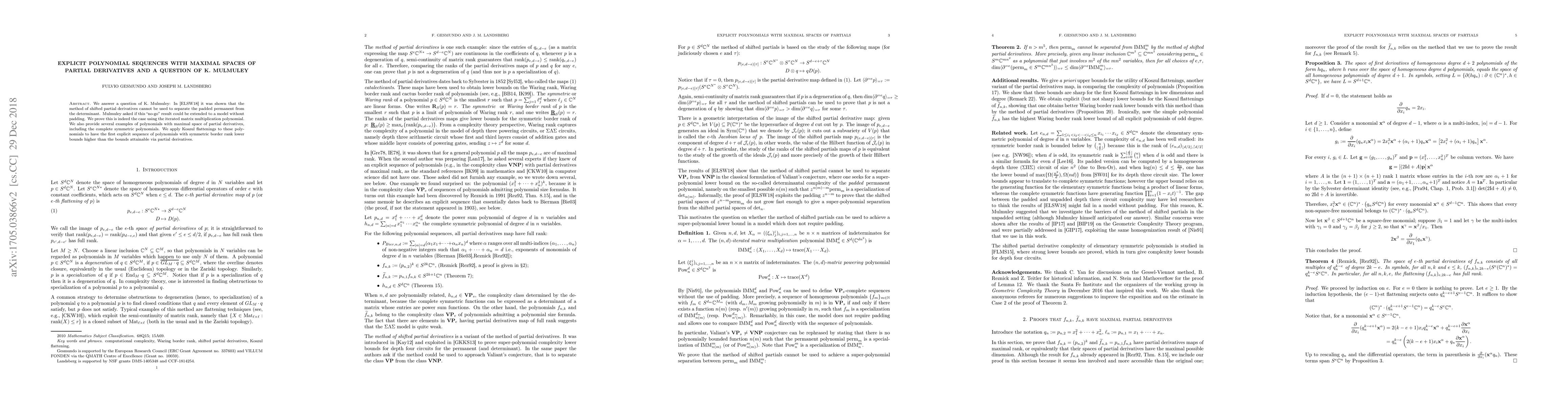 The paper introduces new methods for analyzing polynomial sequences with maximal spaces of partial derivatives and extends the understanding of symmetric border rank lower bounds.