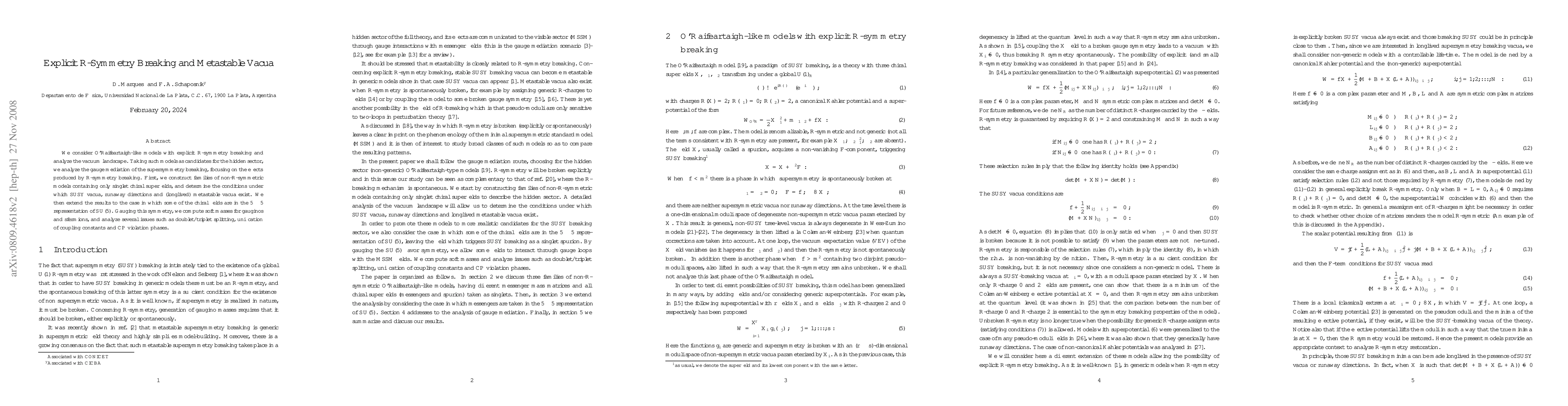This research investigates O'Raifeartaigh-like models with explicit R-symmetry breaking to determine the existence of supersymmetry (SUSY) vacua, runaway directions, and metastable vacua. It further gauges SU(5) symmetry, computes soft masses for gauginos and sfermions, and analyzes implications like doublet/triplet splitting, unification, and CP violation.