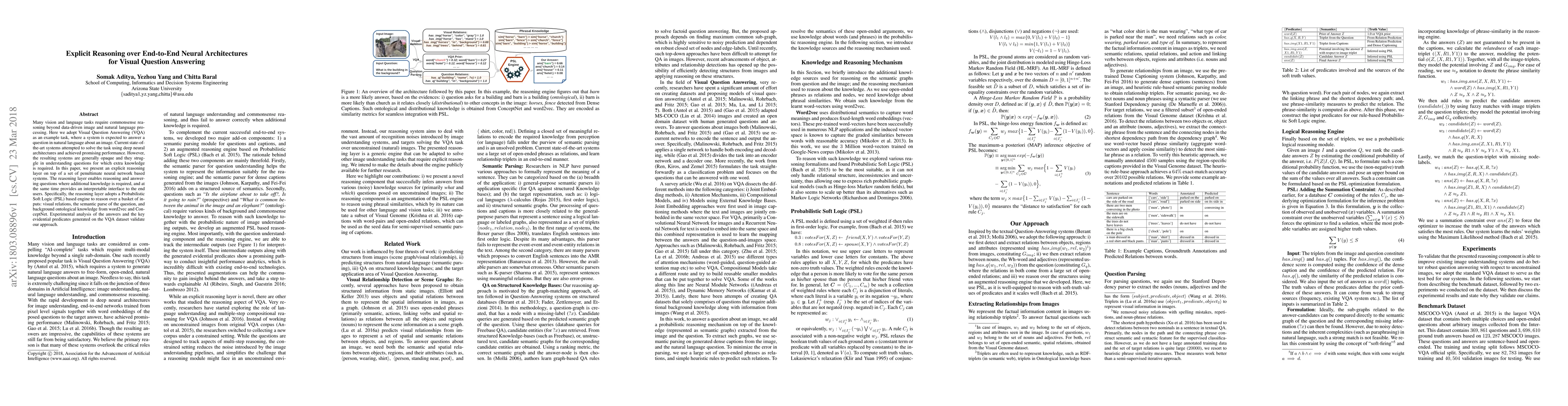 This paper introduces an explicit reasoning layer on neural network-based Visual Question Answering (VQA) systems to enhance their ability to answer questions requiring commonsense reasoning. The reasoning layer uses Probabilistic Soft Logic (PSL) to integrate visual relations, question semantics, and background knowledge, improving interpretability and performance for complex questions.