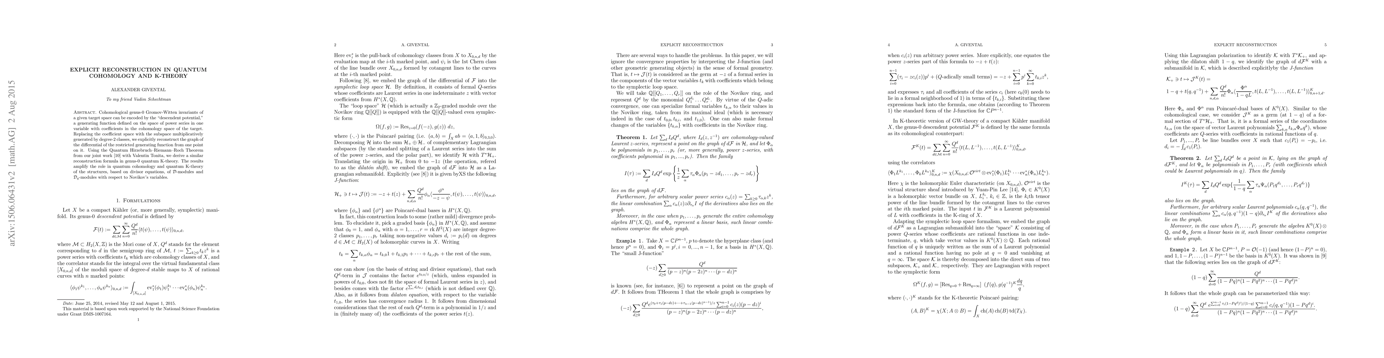 Cohomological genus-0 Gromov-Witten invariants of a given target space can be encoded by the "descendant potential," a generating function defined on the space of power series in one variable with coefficients in the cohomology space of the target. Replacing the coefficient space with the subspace multiplicatively generated by degree-2 classes, we explicitly reconstruct the graph of the differential of the restricted generating function from one point on it. Using the Quantum Hirzebruch--Riemann--Roch Theorem from our joint work with Valentin Tonita, we derive a similar reconstruction formula in genus-0 quantum K-theory. The results amplify the role of the divisor equations, and the structures of $D$-modules and $D_q$-modules in quantum cohomology and quantum K-theory with respect to Novikov's variables.