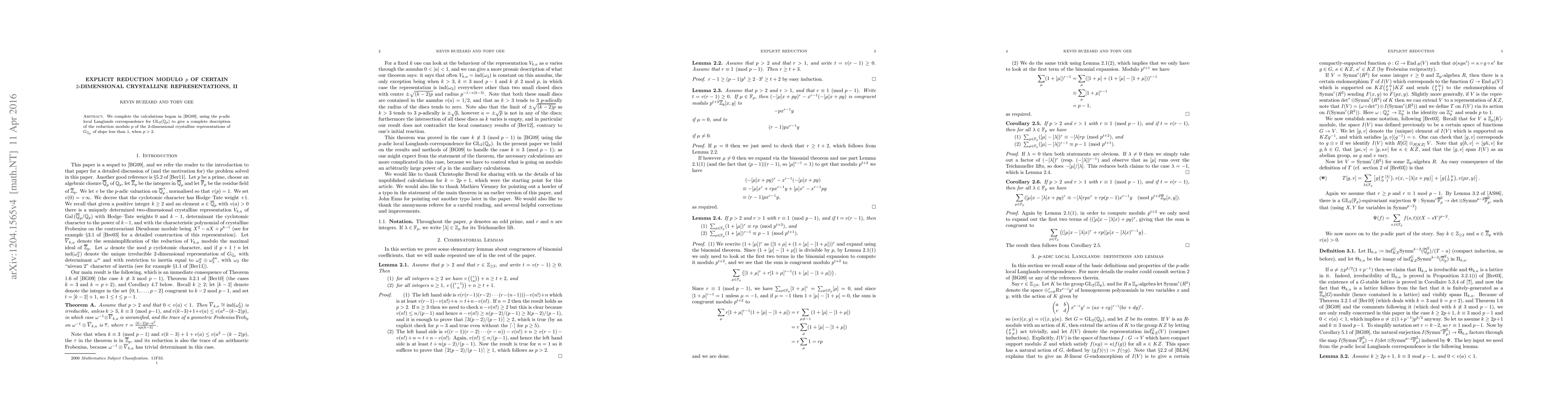 We complete the calculations begun in [BG09], using the p-adic local Langlands correspondence for GL2(Q_p) to give a complete description of the reduction modulo p of the 2-dimensional crystalline representations of G_{Q_p} of slope less than 1, when p > 2.