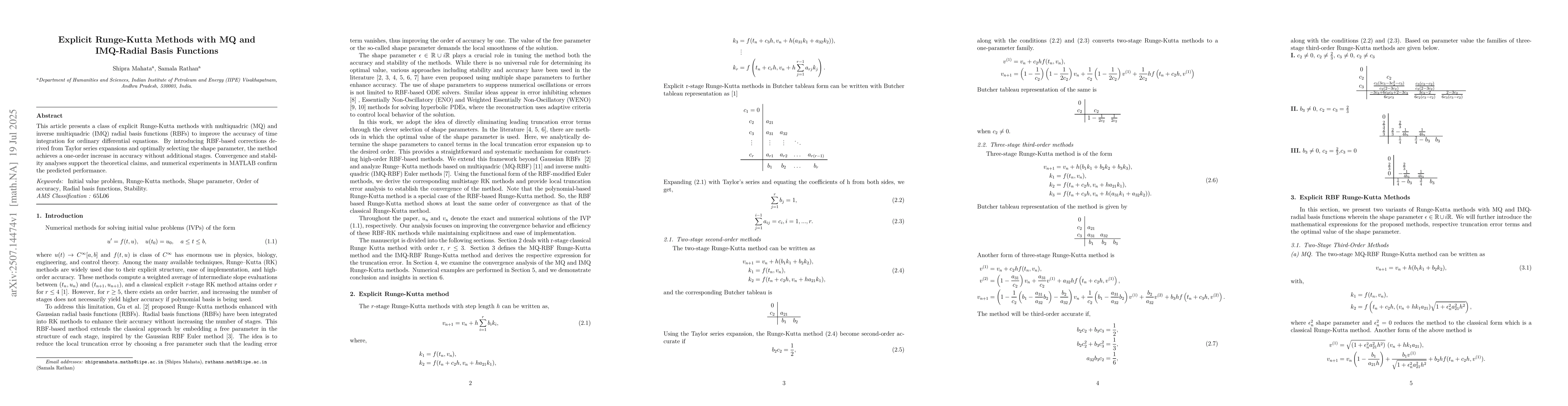 This article presents a class of explicit Runge-Kutta methods with multiquadric (MQ) and inverse multiquadric (IMQ) radial basis functions (RBFs) to improve the accuracy of time integration for ordinary differential equations. By introducing RBF-based corrections derived from Taylor series expansions and optimally selecting the shape parameter, the method achieves a one-order increase in accuracy without additional stages. Convergence and stability analyses support the theoretical claims, and numerical experiments in MATLAB confirm the predicted performance.