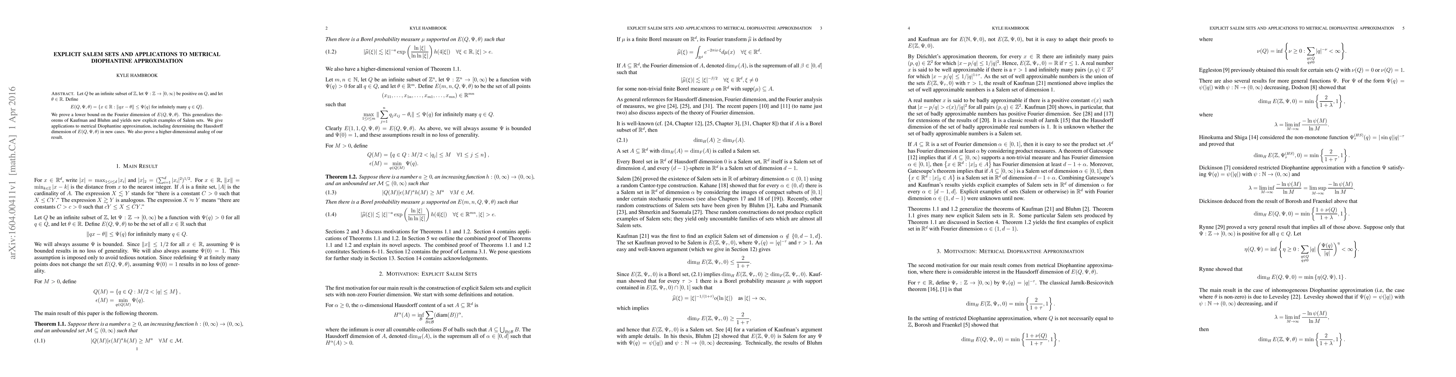 This research contributes to the field of Diophantine approximation by providing new insights into Salem sets and their Fourier dimensions, which have implications for understanding the distribution of rational approximations to real numbers.