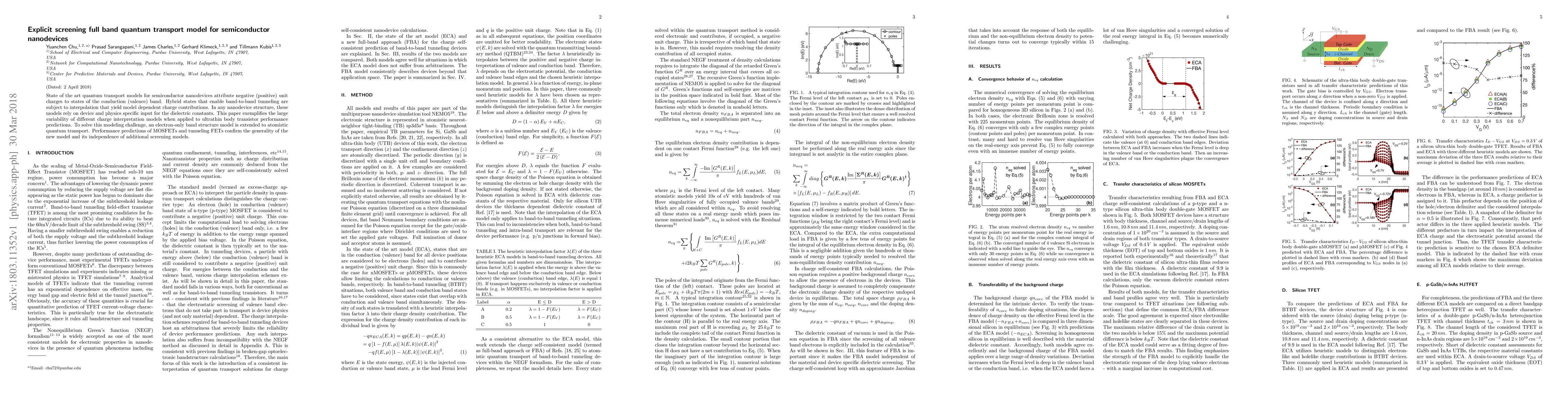 State of the art quantum transport models for semiconductor nanodevices attribute negative (positive) unit charges to states of the conduction (valence) band. Hybrid states that enable band-to-band tunneling are subject to interpolation that yield model dependent charge contributions. In any nanodevice structure, these models rely on device and physics specific input for the dielectric constants. This paper exemplifies the large variability of different charge interpretation models when applied to ultrathin body transistor performance predictions. To solve this modeling challenge, an electron-only band structure model is extended to atomistic quantum transport. Performance predictions of MOSFETs and tunneling FETs confirm the generality of the new model and its independence of additional screening models.