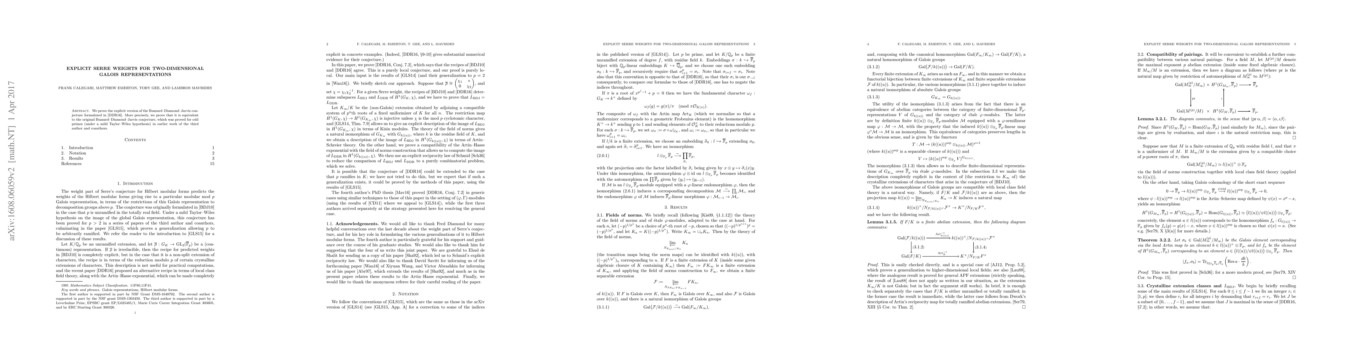 This paper proves the explicit version of the Buzzard-Diamond-Jarvis conjecture for two-dimensional Galois representations, showing its equivalence to the original conjecture previously proven for odd primes under a Taylor-Wiles hypothesis.