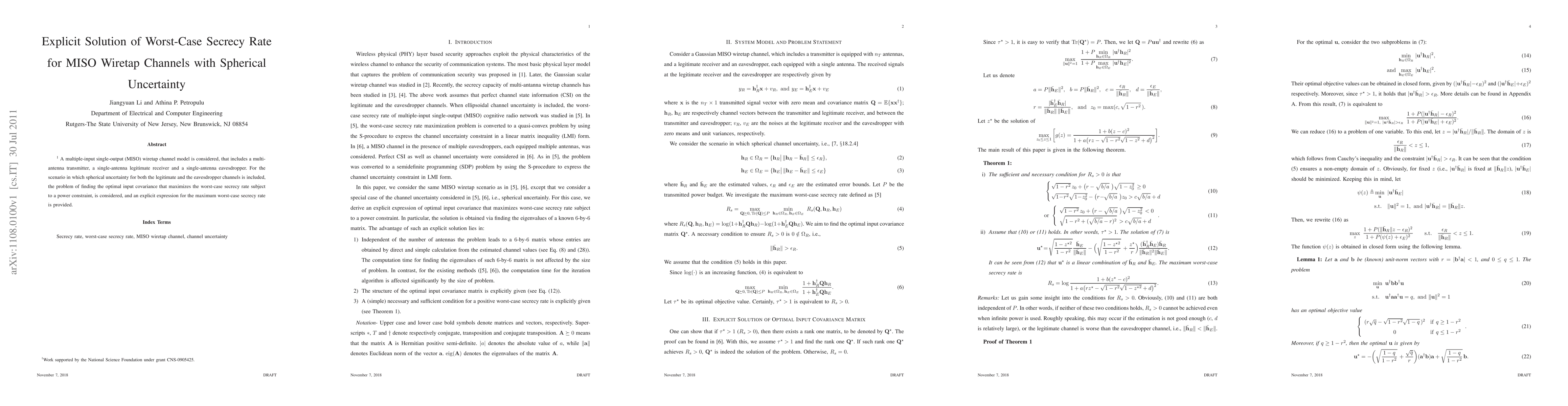 A multiple-input single-output (MISO) wiretap channel model is considered, that includes a multi-antenna transmitter, a single-antenna legitimate receiver and a single-antenna eavesdropper. For the scenario in which spherical uncertainty for both the legitimate and the eavesdropper channels is included, the problem of finding the optimal input covariance that maximizes the worst-case secrecy rate subject to a power constraint, is considered, and an explicit expression for the maximum worst-case secrecy rate is provided.