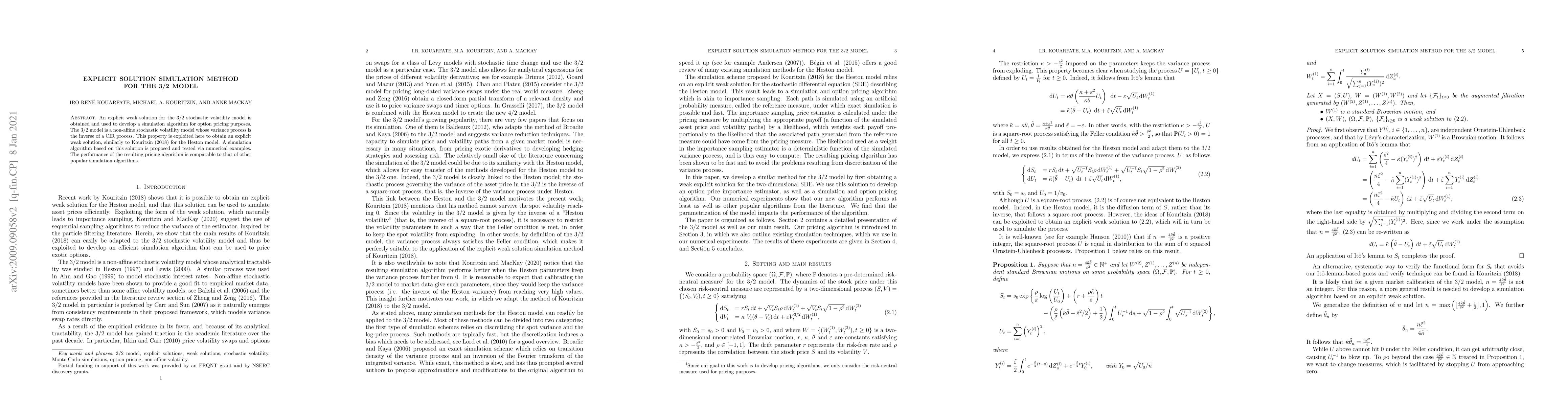 A new simulation algorithm for option pricing is developed based on an explicit solution for the 3/2 stochastic volatility model, showing comparable performance to existing algorithms.