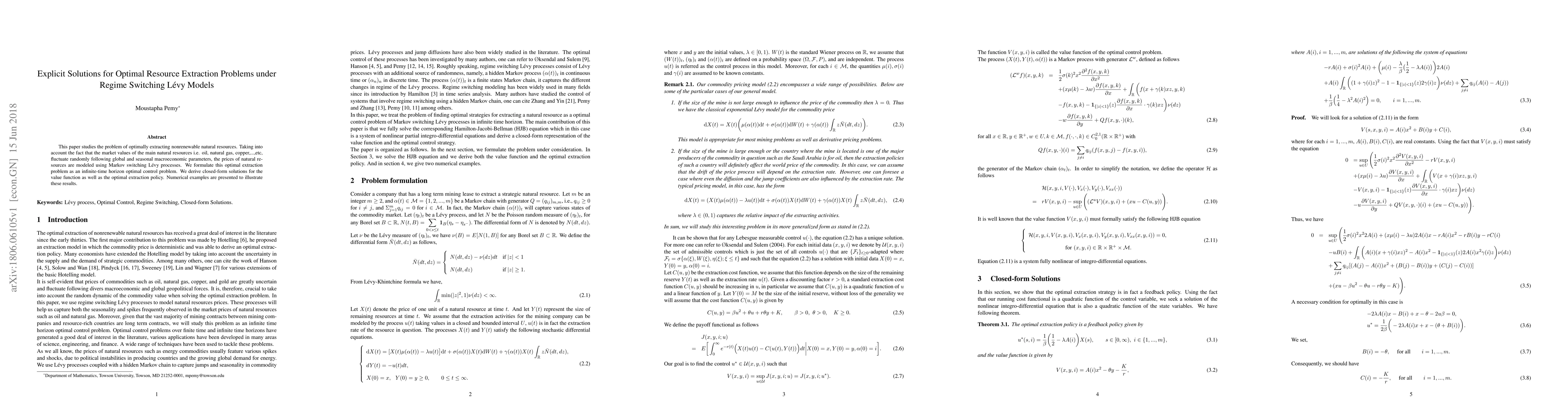 This paper explores optimal extraction of nonrenewable resources under fluctuating market prices modeled by Markov switching Lévy processes. It derives closed-form solutions for the value function and optimal extraction policy, validated through numerical examples.