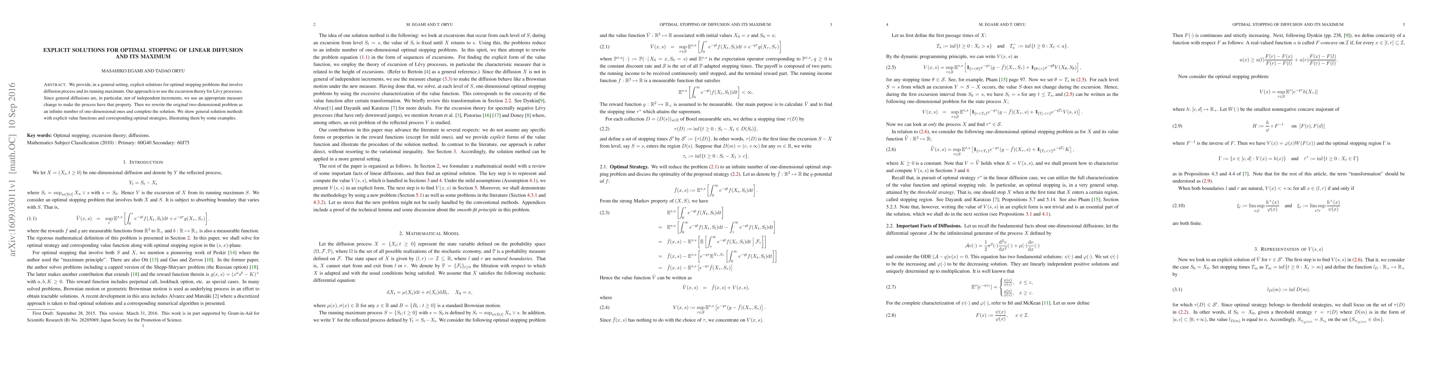 We provide, in a general setting, explicit solutions for optimal stopping problems that involve diffusion process and its running maximum. Our approach is to use the excursion theory for Levy processes. Since general diffusions are, in particular, not of independent increments, we use an appropriate measure change to make the process have that property. Then we rewrite the original two-dimensional problem as an infinite number of one-dimensional ones and complete the solution. We show general solution methods with explicit value functions and corresponding optimal strategies, illustrating them by some examples.
