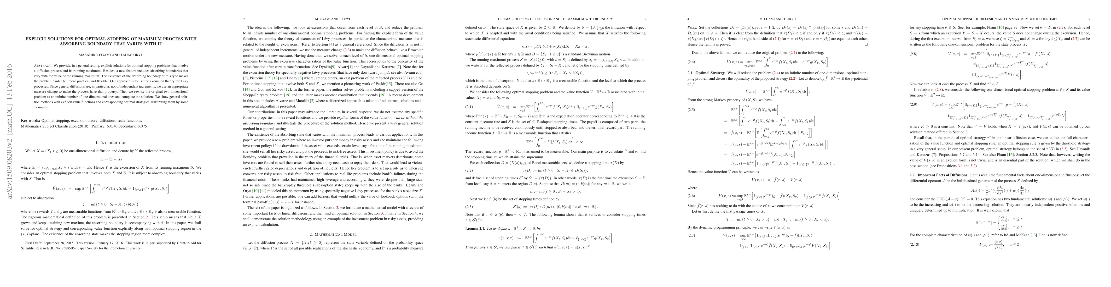 We provide, in a general setting, explicit solutions for optimal stopping problems that involve a diffusion process and its running maximum. Besides, a new feature includes absorbing boundaries that vary with the value of the running maximum. The existence of the absorbing boundary of this type makes the problem harder but more practical and flexible. Our approach is to use the excursion theory for Levy processes. Since general diffusions are, in particular, not of independent increments, we use an appropriate measure change to make the process have that property. Then we rewrite the original two-dimensional problem as an infinite number of one-dimensional ones and complete the solution. We show general solution methods with explicit value functions and corresponding optimal strategies, illustrating them by some examples.