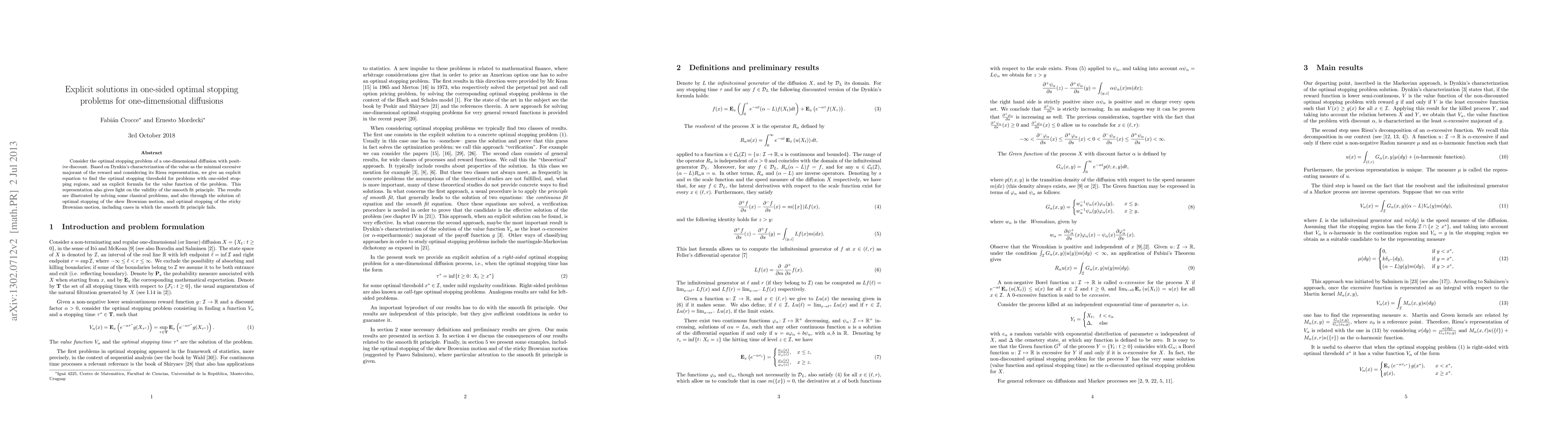This paper provides explicit solutions for one-sided optimal stopping problems in one-dimensional diffusions, deriving an equation for the optimal stopping threshold and a formula for the value function. It also examines the smooth fit principle's validity through classical and specific examples, including skew and sticky Brownian motions.