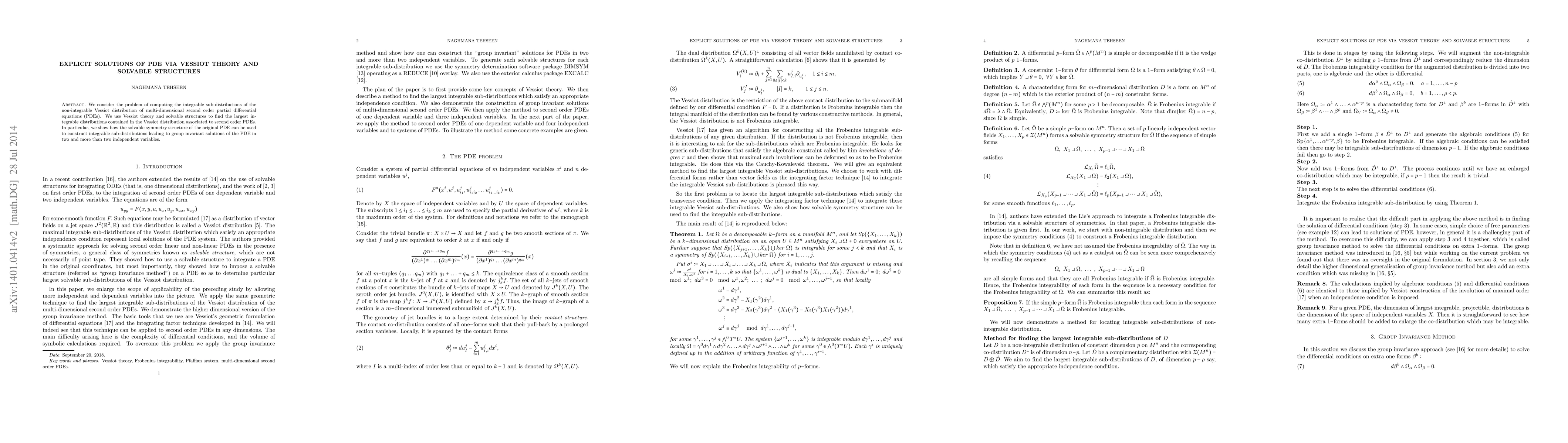 This paper explores the use of Vessiot theory and solvable structures to identify integrable sub-distributions within non-integrable Vessiot distributions of multi-dimensional second-order PDEs. It demonstrates how the solvable symmetry structure of the original PDE can yield group invariant solutions.