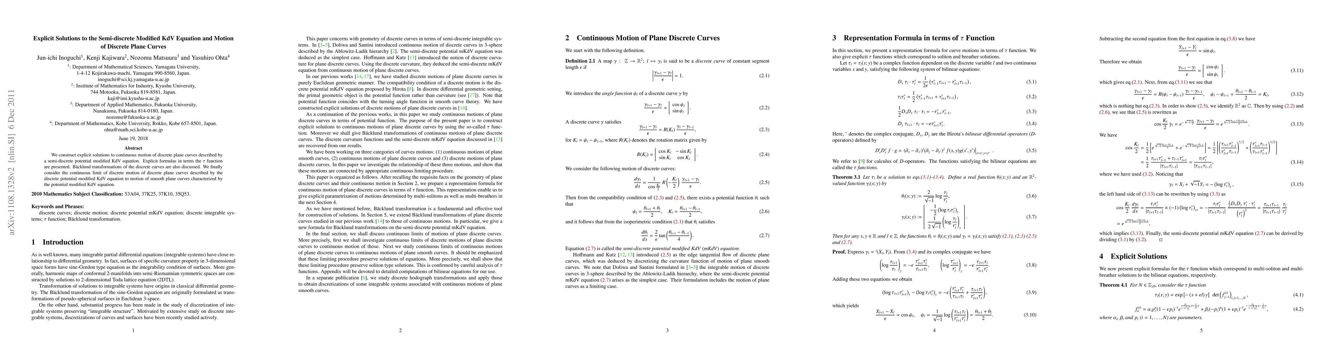 This paper constructs explicit solutions for the semi-discrete modified KdV equation governing the continuous motion of discrete plane curves, presenting formulas using the $\tau$ function, and discusses Bäcklund transformations and the continuous limit to smooth plane curves.