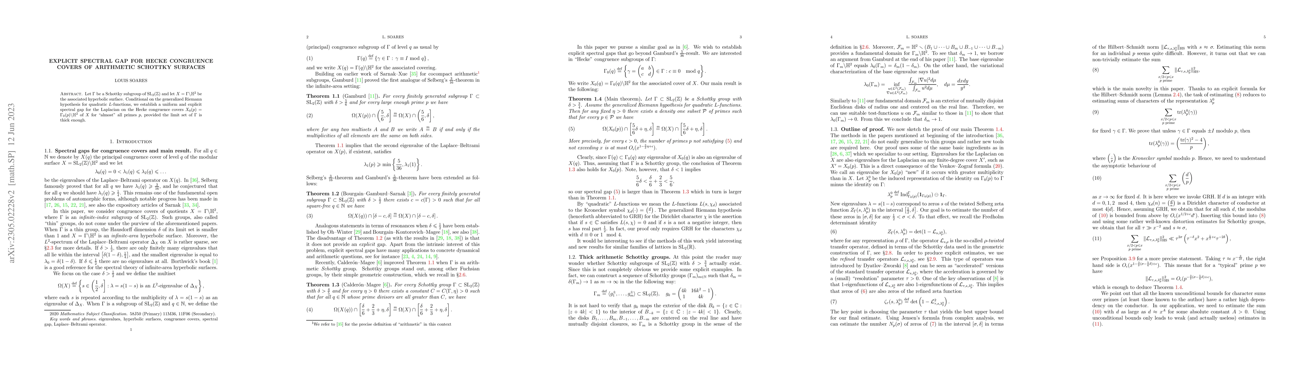 This paper establishes a uniform and explicit spectral gap for the Laplacian on Hecke congruence covers of hyperbolic surfaces associated with Schottky subgroups, under the generalized Riemann hypothesis for quadratic $L$-functions, for "almost" all primes, given sufficient thickness of the limit set.