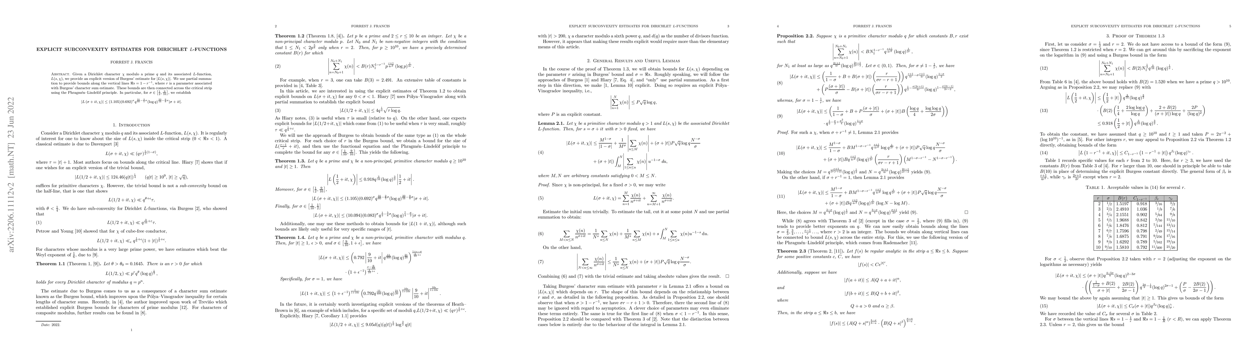 The paper provides explicit subconvexity estimates for Dirichlet L-functions using partial summation and the Phragmén-Lindelöf principle, building upon Burgess' character sum estimate.