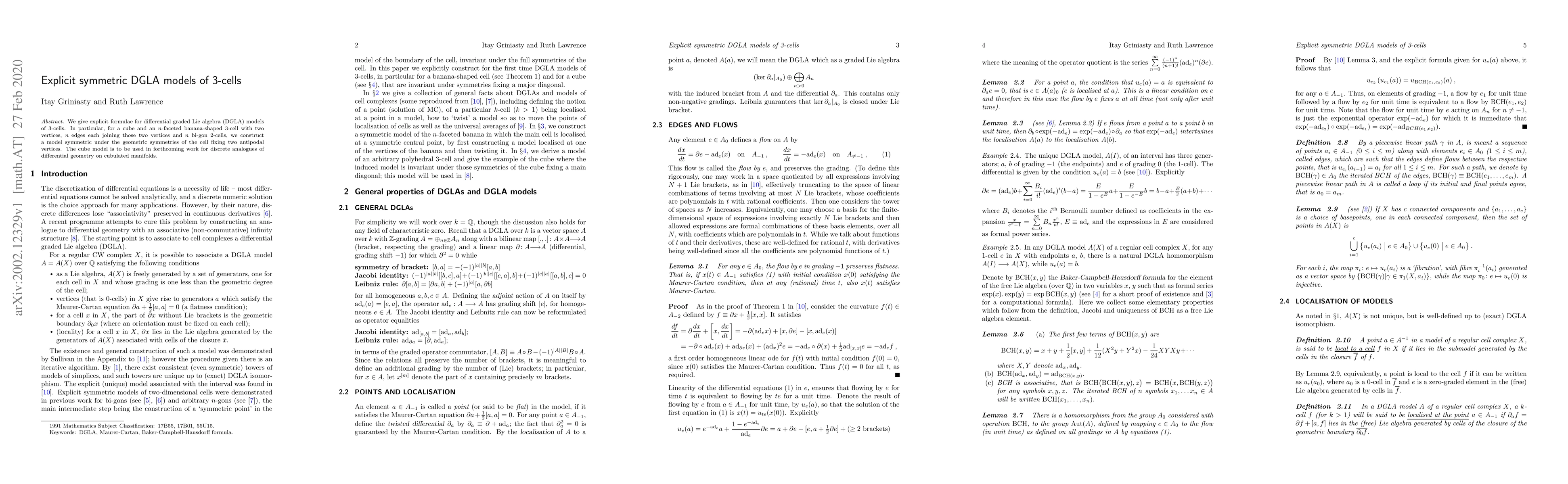 We give explicit formulae for differential graded Lie algebra (DGLA) models of 3-cells. In particular, for a cube and an $n$-faceted banana-shaped 3-cell with two vertices, $n$ edges each joining those two vertices and $n$ bi-gon 2-cells, we construct a model symmetric under the geometric symmetries of the cell fixing two antipodal vertices. The cube model is to be used in forthcoming work for discrete analogues of differential geometry on cubulated manifolds.