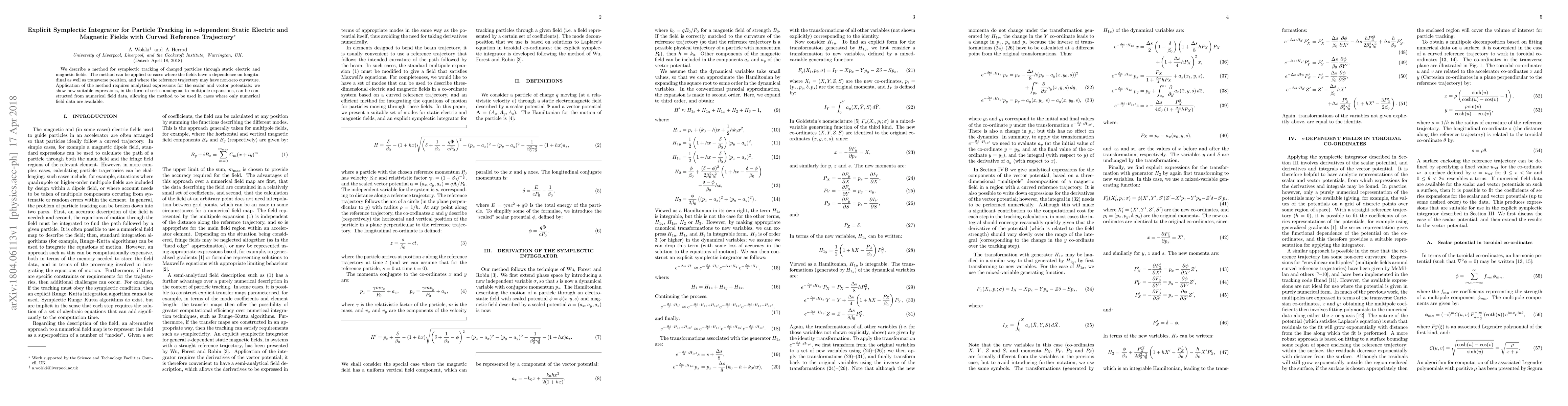 This paper presents an explicit symplectic integrator for tracking charged particles in static electric and magnetic fields with position-dependent characteristics and curved reference trajectories. It provides a method to construct analytical potentials from numerical field data for accurate particle tracking.