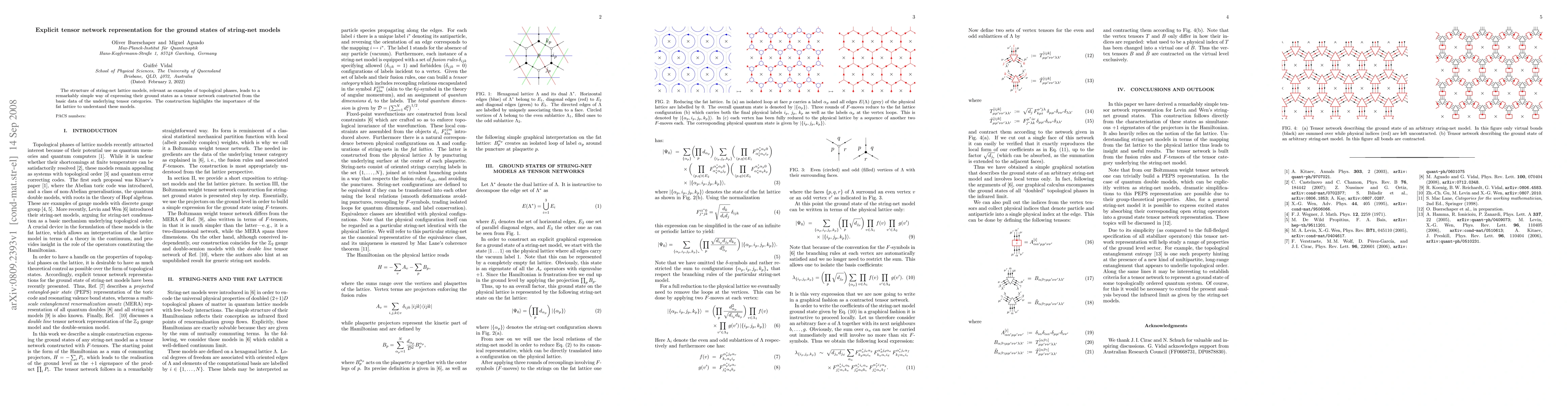 Summary: This paper presents a tensor network representation for the ground states of string-net models, emphasizing their topological phase characteristics and the significance of the fat lattice in this construction. The approach simplifies the expression of these states using tensor categories.