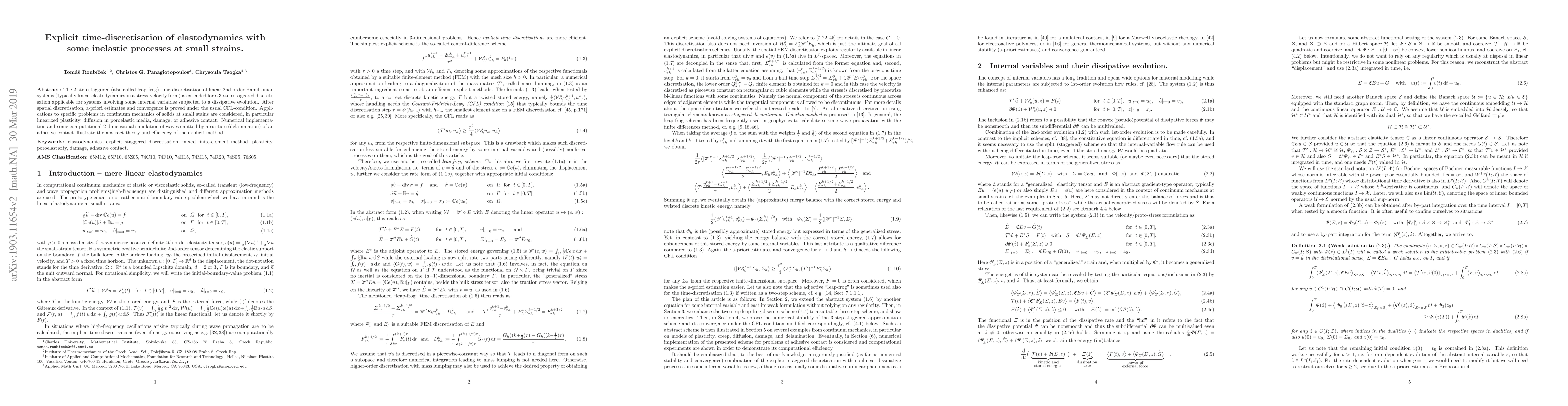 The 2-step staggered (also called leap-frog) time discretisation of linear 2nd-order Hamiltonian systems (typically linear elastodynamics in a stress-velocity form) is extended for a 3-step staggered discretisation applicable for systems involving some internal variables subjected to a dissipative evolution. After spatial discretisation, a-priori estimates and convergence is proved under the usual CFL-condition. Applications to specific problems in continuum mechanics of solids at small stains are considered, in particular linearized plasticity, diffusion in poroelastic media, damage, or adhesive contact. Numerical implementation and some computational 2-dimensional simulation of waves emitted by a rupture (delamination) of an adhesive contact illustrate the abstract theory and efficiency of the explicit method.