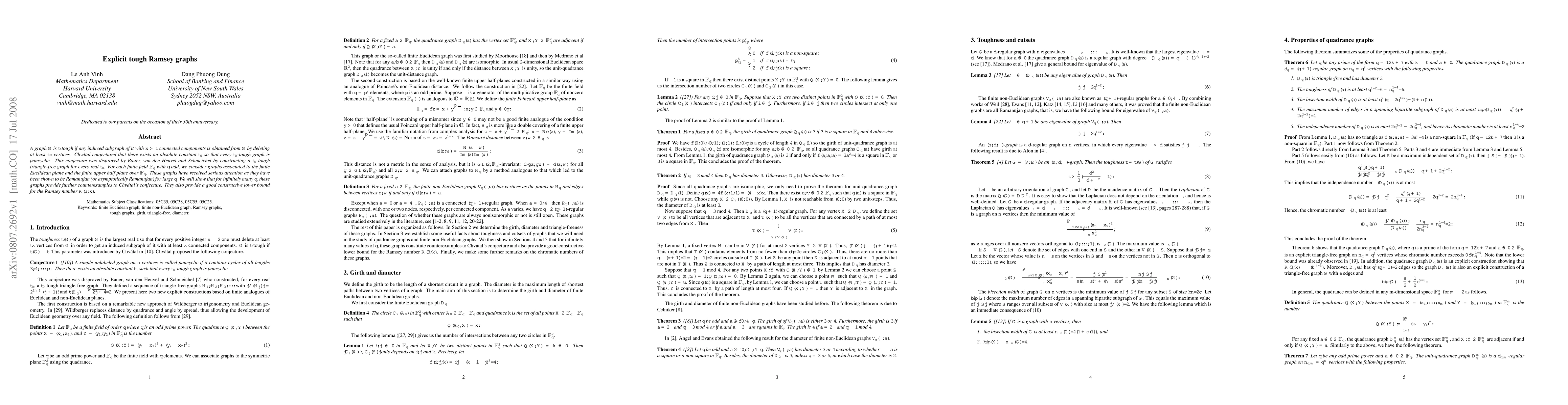 Explicit construction of t_0-tough triangle-free graphs for infinitely many finite fields F_q, providing counterexamples to Chvatal's conjecture.