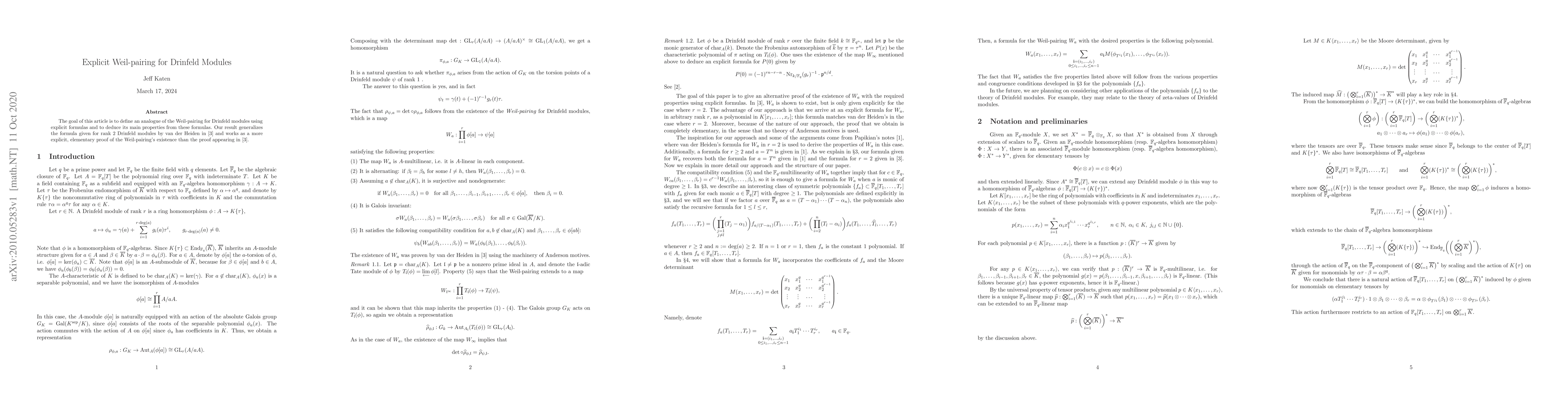 This paper defines an explicit Weil-pairing for Drinfeld modules, providing an elementary proof for its existence, and generalizes the known formula for rank 2 Drinfeld modules. It establishes the main properties of this pairing through explicit formulas.