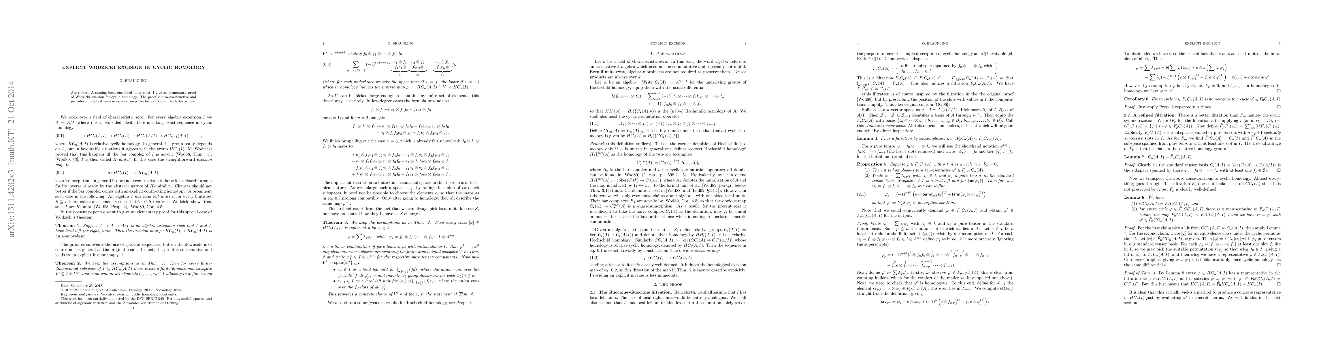 This paper provides an elementary and constructive proof for Wodzicki excision in cyclic homology under the assumption of local one-sided units, offering an explicit inverse excision map, which appears to be a novel contribution.
