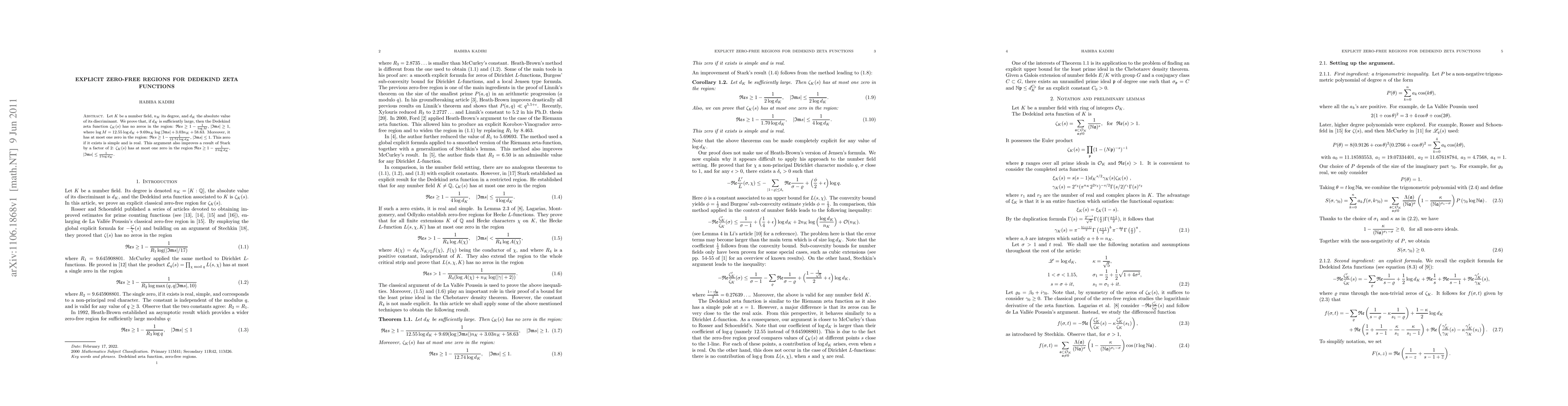 This paper establishes explicit zero-free regions for Dedekind zeta functions associated with number fields, proving that for sufficiently large discriminants, no zeros exist in specified regions and at most one simple real zero may exist in another region, improving upon a prior result by Stark.