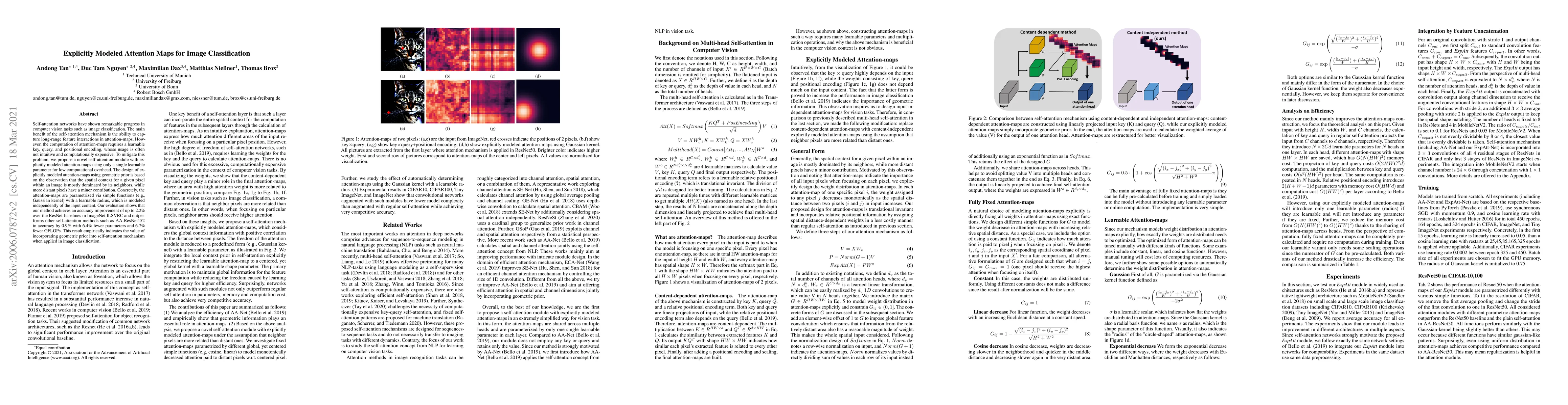 The paper proposes a novel self-attention module for image classification tasks, explicitly modeling attention maps with a single learnable parameter to reduce computational overhead.