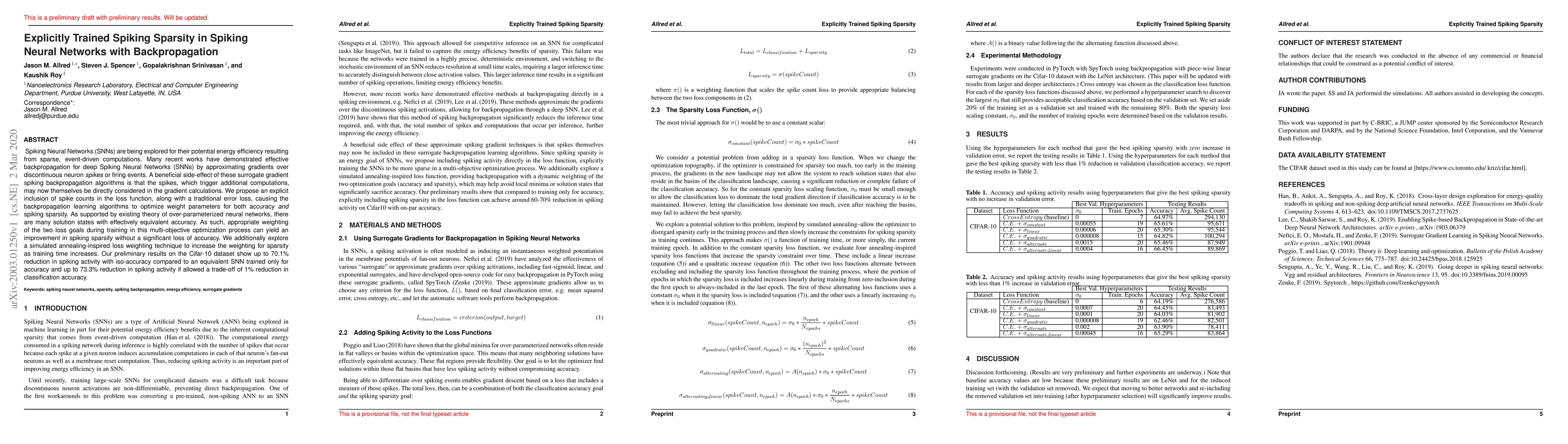 This research explores the potential energy efficiency of Spiking Neural Networks by explicitly training spiking sparsity and demonstrates its effectiveness on the CIFAR-10 dataset.
