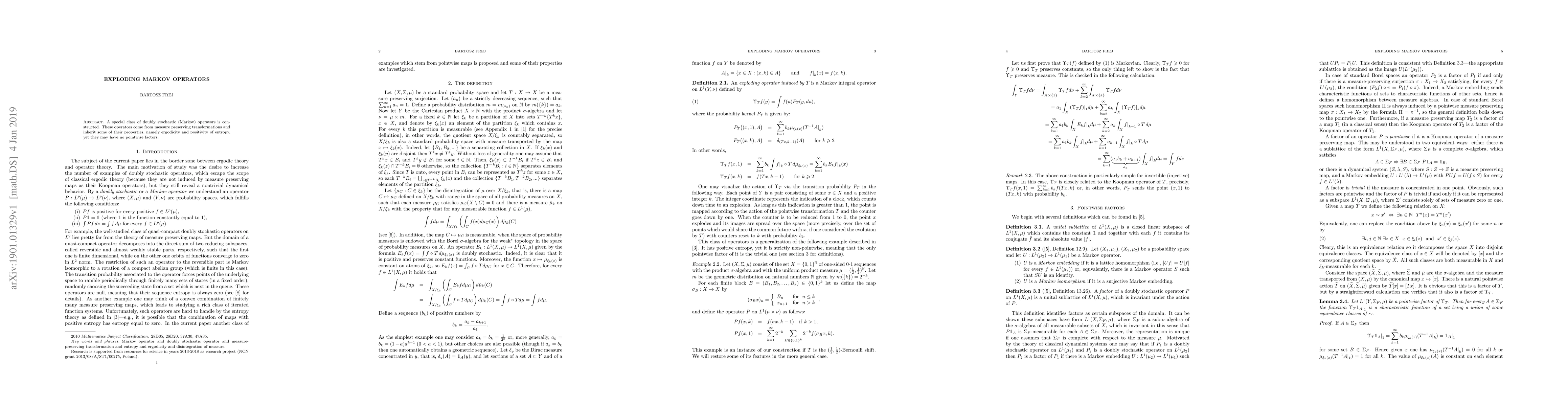 Summary: This paper constructs a unique class of doubly stochastic Markov operators derived from measure-preserving transformations, which exhibit ergodicity and positive entropy, despite lacking pointwise factors.