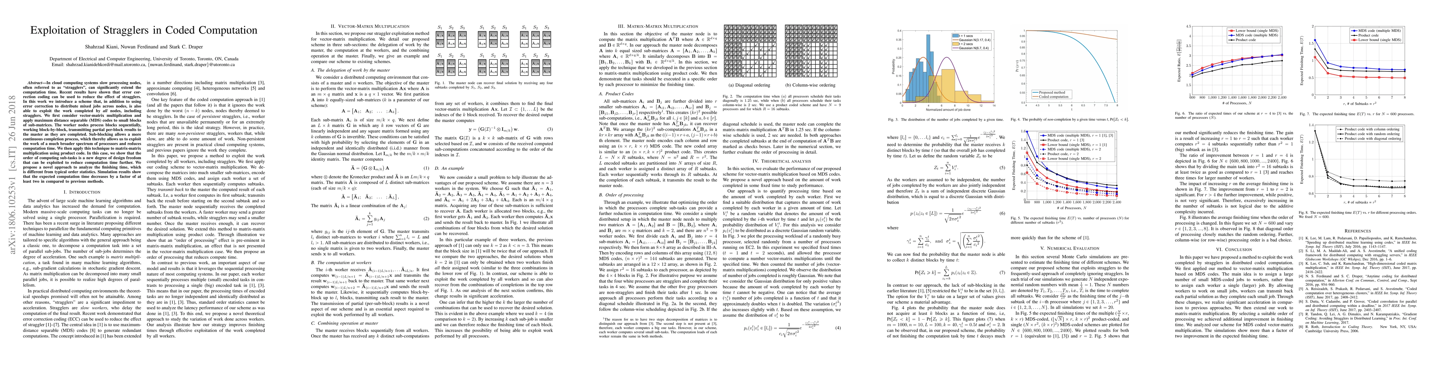 In cloud computing systems slow processing nodes, often referred to as "stragglers", can significantly extend the computation time. Recent results have shown that error correction coding can be used to reduce the effect of stragglers. In this work we introduce a scheme that, in addition to using error correction to distribute mixed jobs across nodes, is also able to exploit the work completed by all nodes, including stragglers. We first consider vector-matrix multiplication and apply maximum distance separable (MDS) codes to small blocks of sub-matrices. The worker nodes process blocks sequentially, working block-by-block, transmitting partial per-block results to the master as they are completed. Sub-blocking allows a more continuous completion process, which thereby allows us to exploit the work of a much broader spectrum of processors and reduces computation time. We then apply this technique to matrix-matrix multiplication using product code. In this case, we show that the order of computing sub-tasks is a new degree of design freedom that can be exploited to reduce computation time further. We propose a novel approach to analyze the finishing time, which is different from typical order statistics. Simulation results show that the expected computation time decreases by a factor of at least two in compared to previous methods.