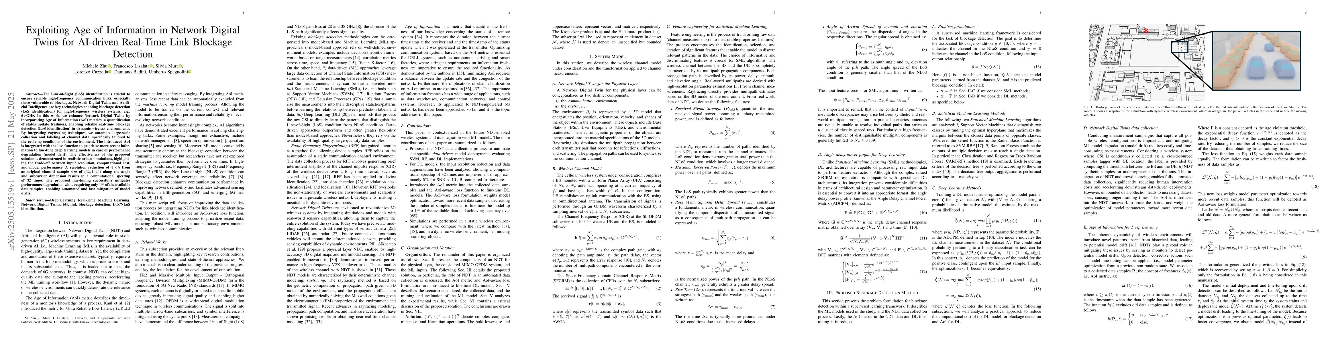 This research is important for ensuring reliable high-frequency communication links, especially in 6 GHz and above systems vulnerable to blockages. By integrating AI and Network Digital Twins with AoI, it offers a novel approach to real-time LoS identification, crucial for dynamic wireless environments.
