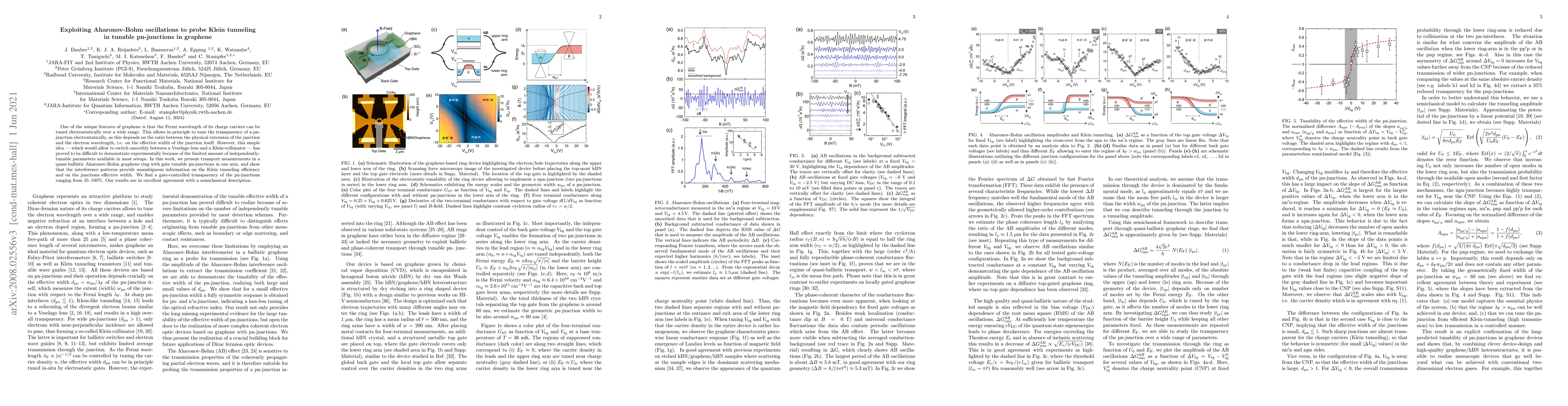 The paper presents a novel approach to probe Klein tunneling efficiency using Aharonov-Bohm oscillations in tunable pn-junctions in graphene, supported by both experimental measurements and semiclassical theory.